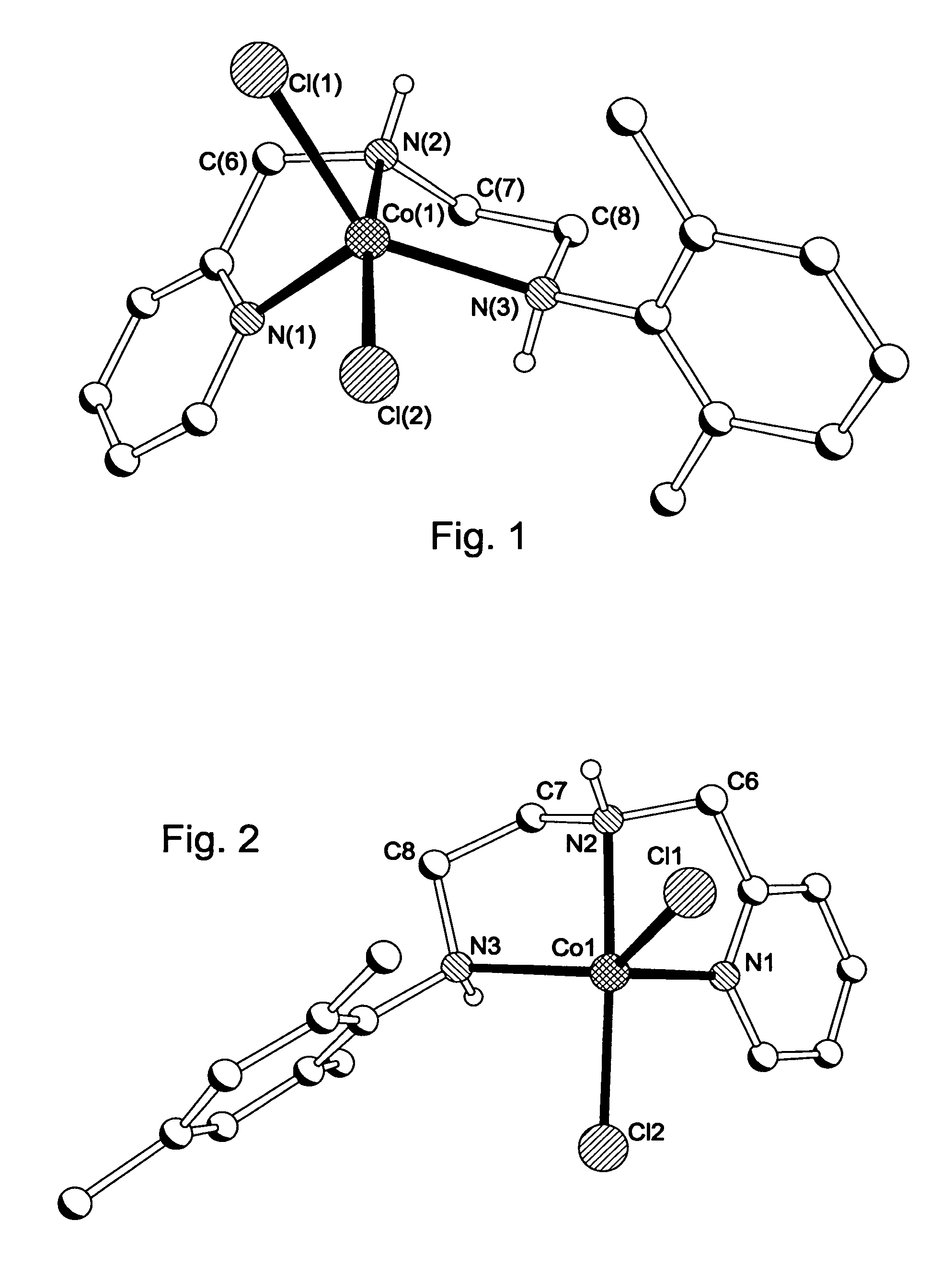 Complex 3b: FAB mass spectrum: m/z 399 [M]+, 364 [M−Cl]+ μeff(Evans Balance) 3.7 BM. C17H23N3CoCl2.CH3CN calcd. C, 51.83; H, 5.95; N, 12.73; found C, 51.84; H, 5.97; N, 12.61%.