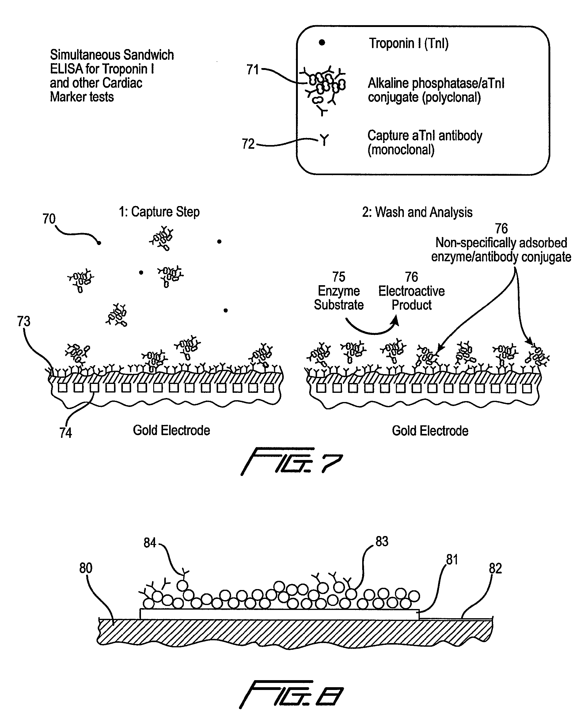 a first immunosensor that generates an electrochemical signal based on the formation of a sandwich between an immobilized antibody, a target analyte and a labeled antibody, wherein a portion of the signal arises from non-specific binding of the labeled antibody in the region of the first immunosensor,