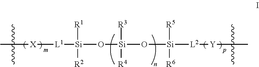 8. The viscoelastic biostable foam according to claim 1 wherein X and Y are both an ether.