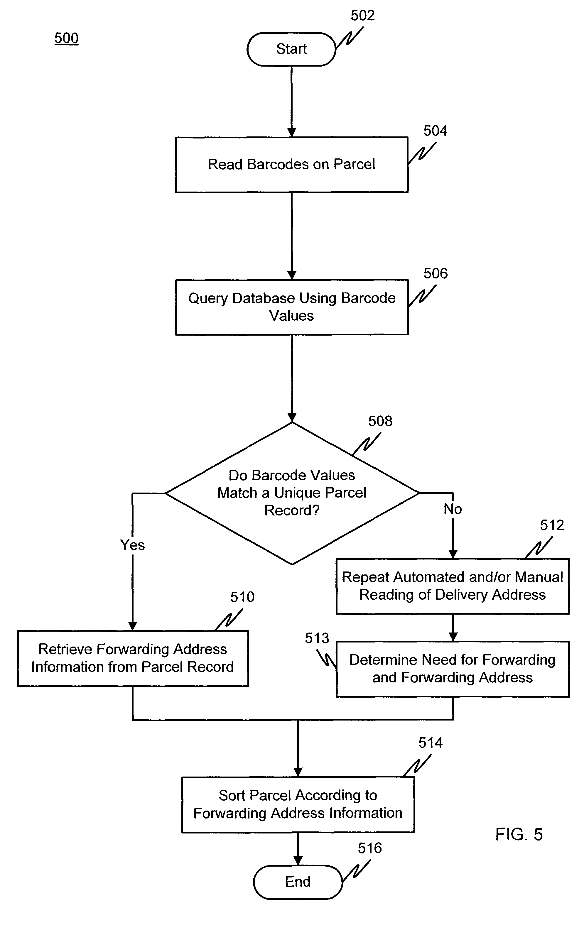 reading by a mailing computer, during a first sortation pass, all machine readable indicia and at least a portion of delivery address information on a parcel, the machine readable indicia having been applied to the parcel prior to mailing, the reading including capturing image data representing the machine readable indicia and the portion of the delivery address information; determining by a mailing computer if any combination of the machine readable indicia applied to the parcel and contained in the image data is unique in a first database and selecting a unique machine readable indicia combination, if present, and interpreting the image data corresponding to the unique machine readable indicia combination to generate a reference indicia, the reference indicia including identified data representing a combination of discrete machine readable indicia, and if not combination of machine readable indicia is unique in the first database, then selecting a non-unique combination of machine readable indicia and interpreting the image data corresponding to the non-unique combination of machine readable indicia to generate the reference indicia; creating an entry by a mailing computer, corresponding to the reference indicia, in the first database, the entry including a portion of the delivery address information for the parcel and a value corresponding to the reference indicia; determine by a mailing computer whether the delivery address information has a corresponding forwarding order by accessing a pre-existing second database, different from the first database, and, when a corresponding forwarding order exists, modifying the portion of the delivery address information stored in the entry of the first database, the modification being made in accordance with the forwarding order; forwarding by a mailing computer the entry to a third database, different from the first and second database, the third database associated with a destination sorting facility different from a sorting facility associated with the first database; reading by a mailing computer the machine readable indicia from the parcel during a second sortation pass, subsequent to the first, identifying the reference indicia and retrieving an entry corresponding to the reference indicia from the third database; storing by a mailing computer the parcel according to delivery address information contained in the entry retrieved from the third database; and delivering the parcel to a location corresponding to the delivery address information retrieved from the third database, wherein the delivering takes place without applying a forwarding address to the parcel when a forwarding order corresponding to the delivery address information on the parcel is in effect. 2. The method of 3. The method of 4. The method of 5. The method of using a handheld device to read the machine readable indicia on the parcel; retrieving delivery address information; and displaying the delivery address information on a display coupled to the handheld device. 6. The method of 7. The method of 8. A computer system for sorting parcels, the computer system comprising:
