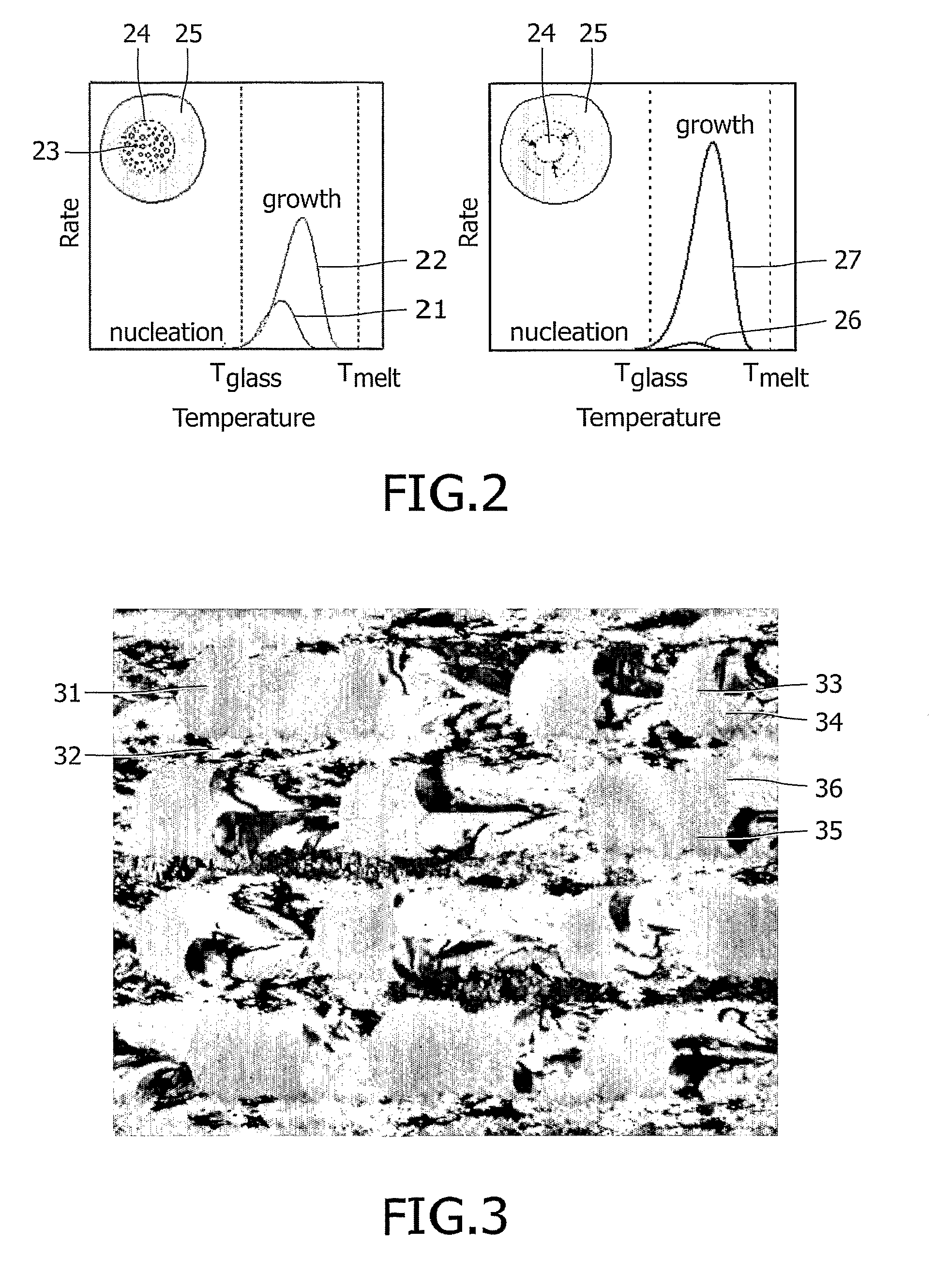 FIG. 2 shows nucleation and growth probabilities curves of two classes of phase-change materials: growth-dominated and nucleation-dominated phase-change materials,
