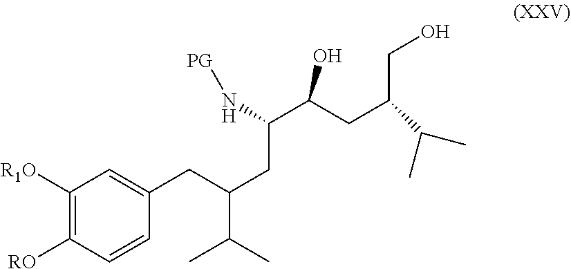 Synthesis of ((1 S,2S,4S)-2-Hydroxy-4-hydroxymethyl-1-{(S)-2-[4-methoxy-3-(3-methoxy-propoxy)-benzyl]-3-methyl-butyl}-5-methyl-hexyl)-carbamic acid tert-butyl ester Compound XXV