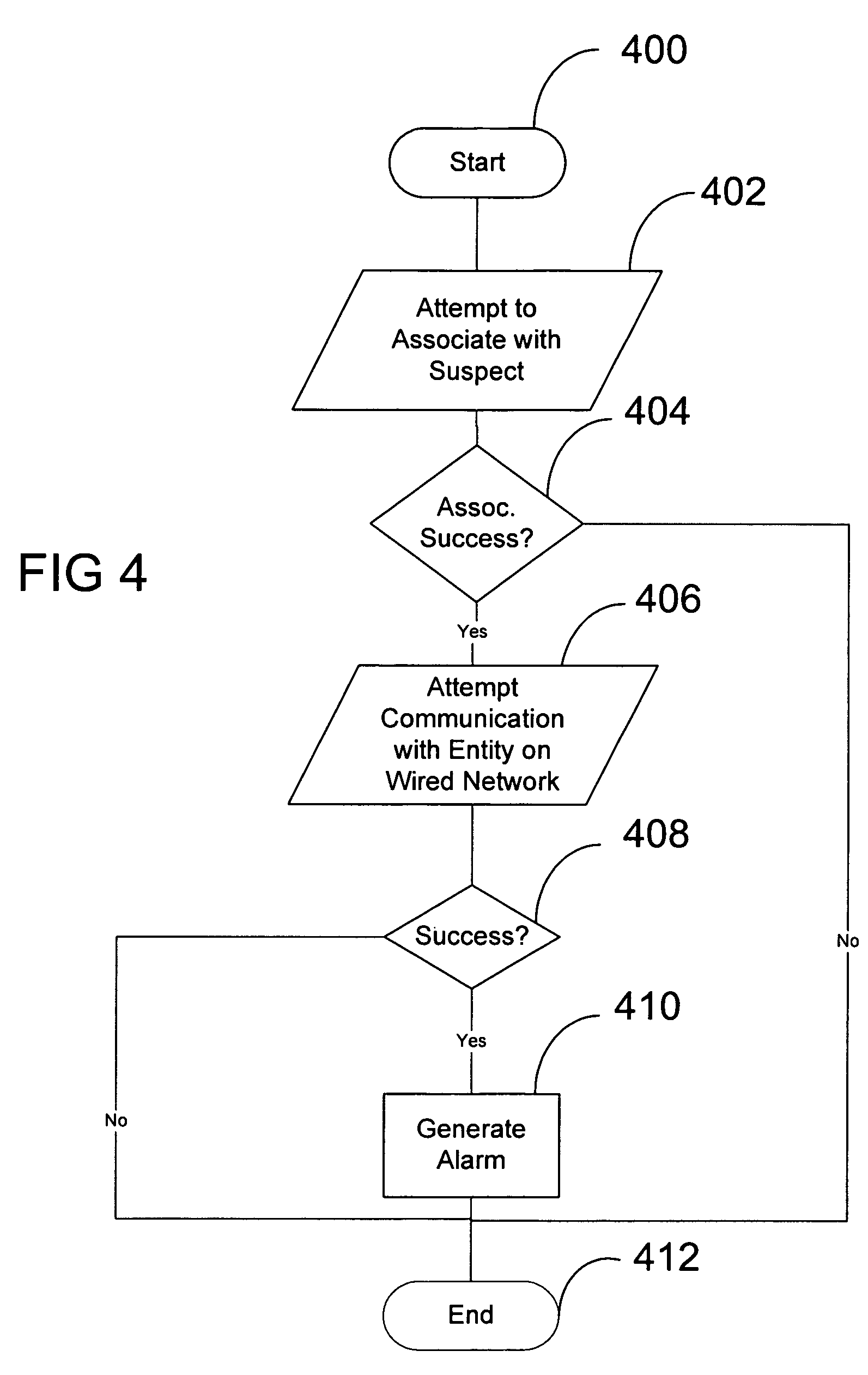 1. A method of detecting rogue wireless network connections to a specific wired network, the method comprising the steps of: