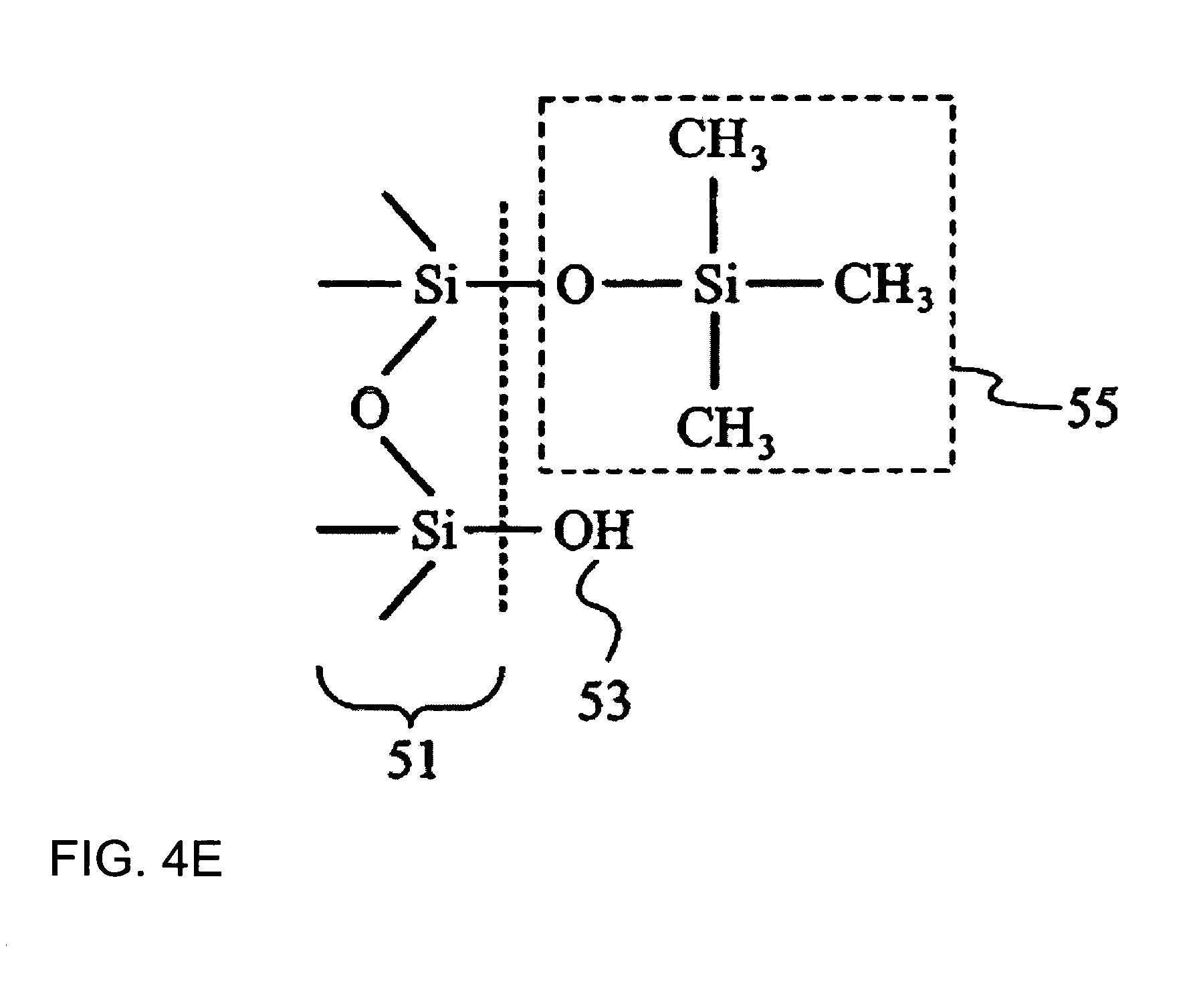 4. The method of claim 2, wherein said treating compound comprises an alkyl siloxane comprising: