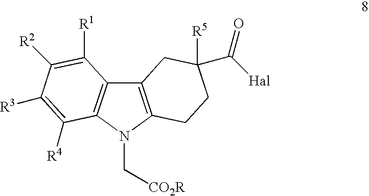 c) 8-Chloro-9-ethoxycarbonylmethyl-2,3,4,9-tetrahydro-1H-carbazole-3-carboxylic acid benzyl ester