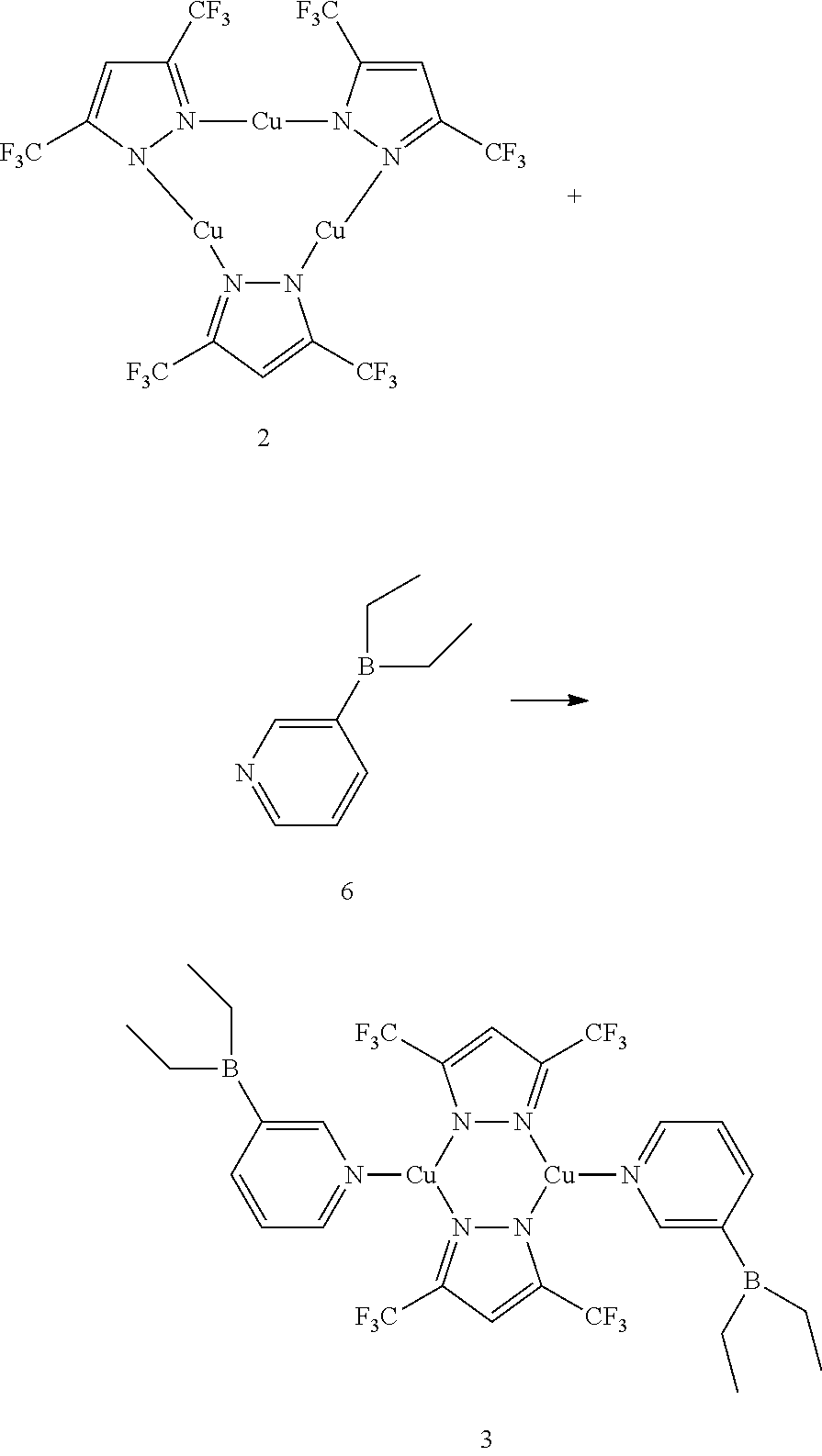 Synthesis of Compound ({[3,5-(CF3)2Pz]Cu[diethyl pyridyl borane]}2of Formula 16