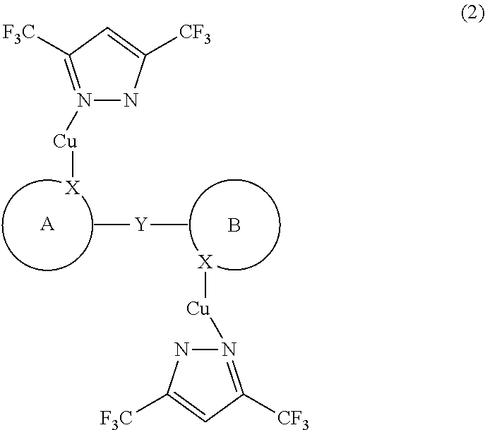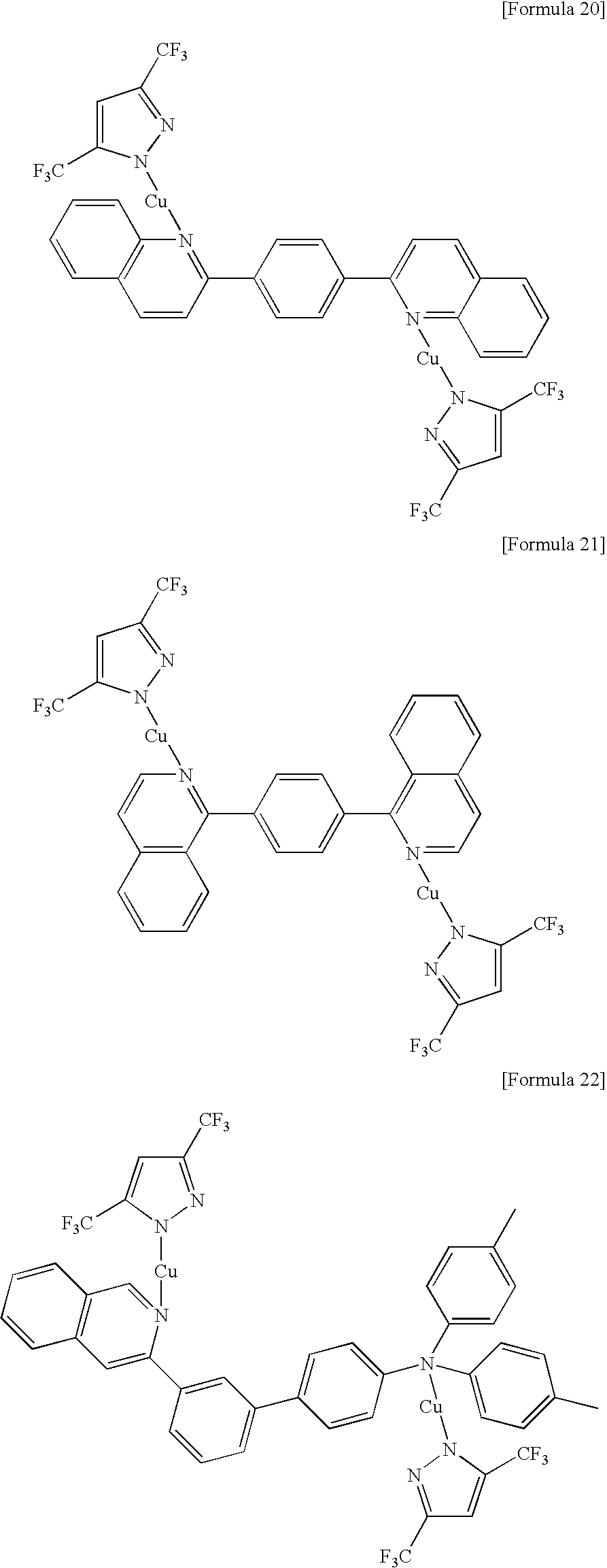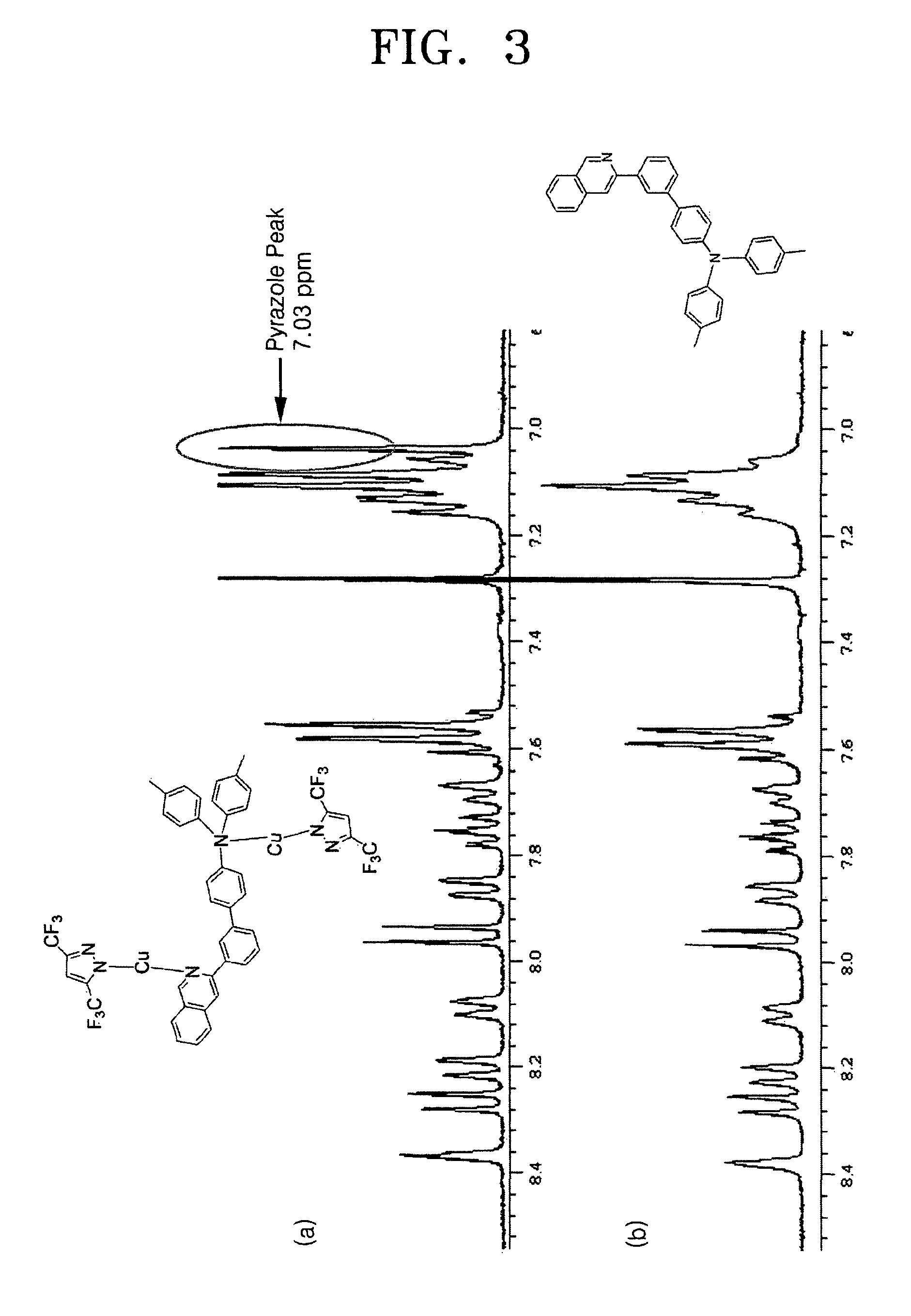 Synthesis of Compound ({[3,5-(CF3)2Pz]Cu[4-(2-isoquinolyl)biphenyl ditoluyl amine]}2) of Formula 22 and 25