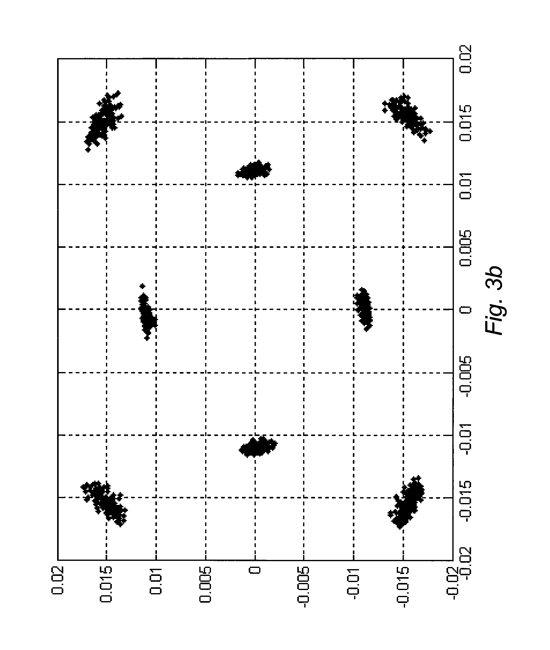 FIG. 3a is a simulated I-Q constellation diagram of the signal after amplitude and phase-asymmetric modulation;