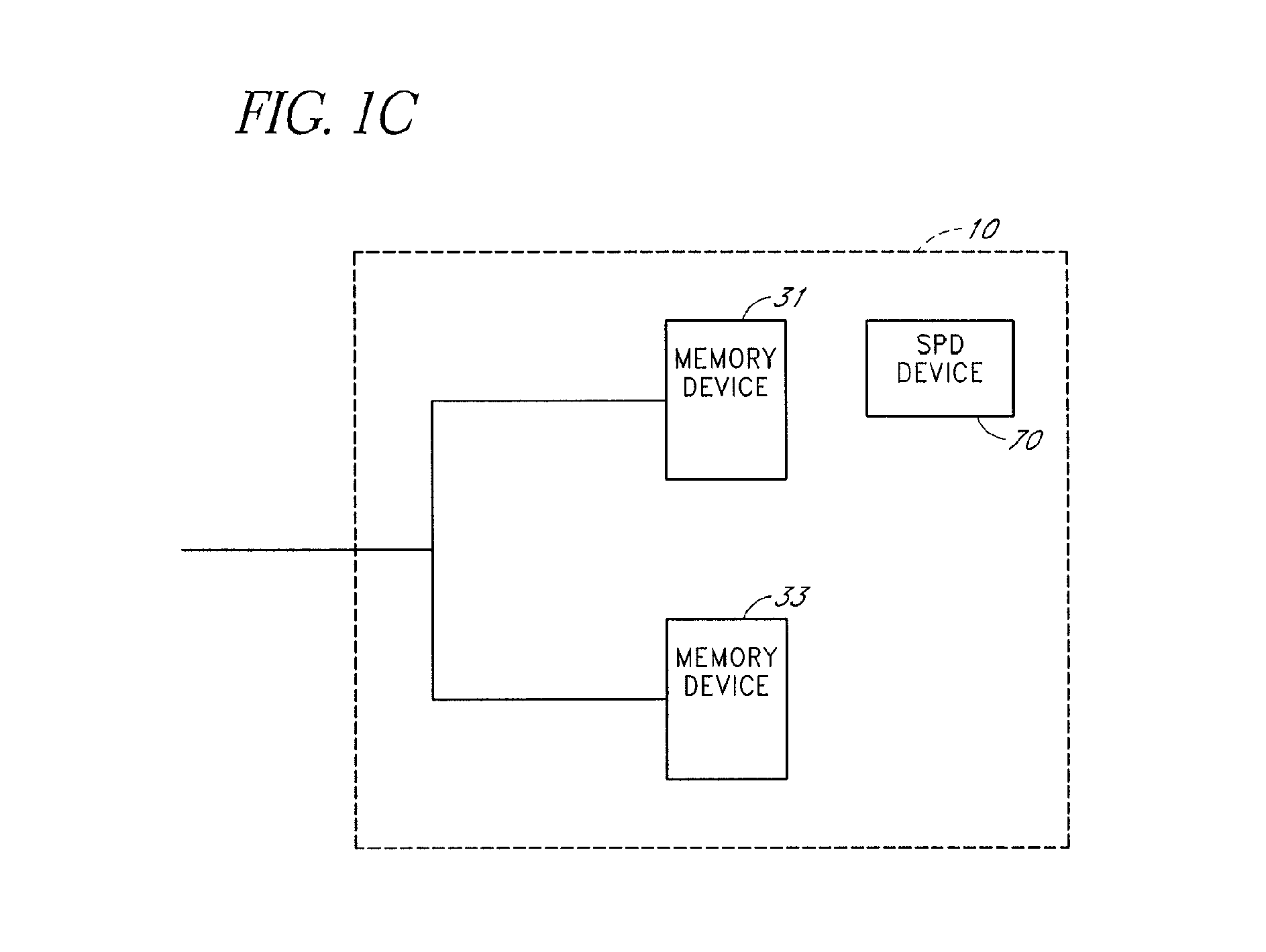 In a further example, for a commercially-available 1-GB (128M×8-byte) memory module utilizing eight 1-Gb memory devices each with a 128M×8-bit configuration, as described above, the SPD device contains the following SPD data (in appropriate bit fields of these bytes):