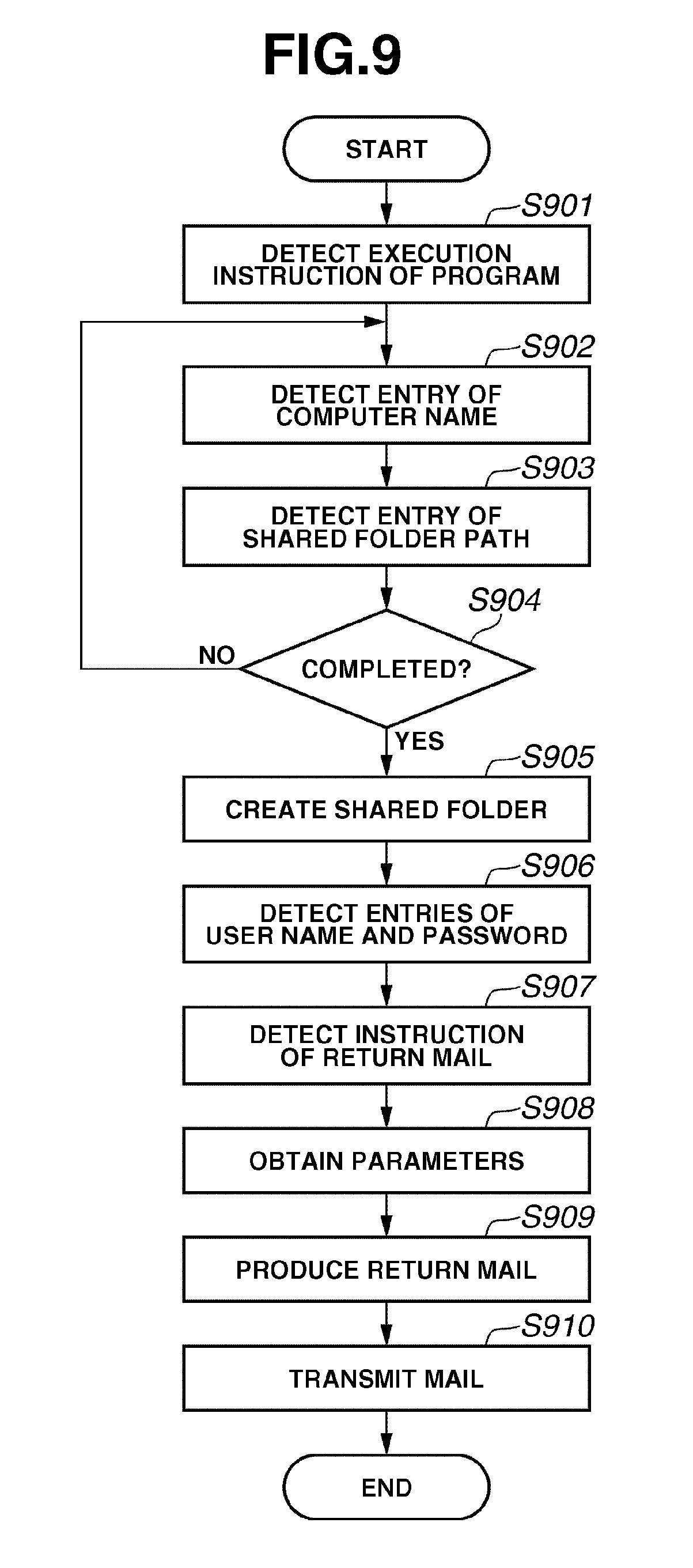 Although the CPU 502 performs the processing of steps S908-S910 in response to the instruction of a user who requests a return mail (refer to step S907), the processing of steps S908-910 can be automatically performed when the complete button 1201 shown in FIG. 12 is selected by a user (refer to step S906). More specifically, upon a user entry of SMB transmission parameters required to transmit image data from the multifunction peripheral 101 to the PC 500, the CPU 502 can automatically produce an electronic mail message, including the parameters, and transmit the produced electronic mail message to the multifunction peripheral 101.
