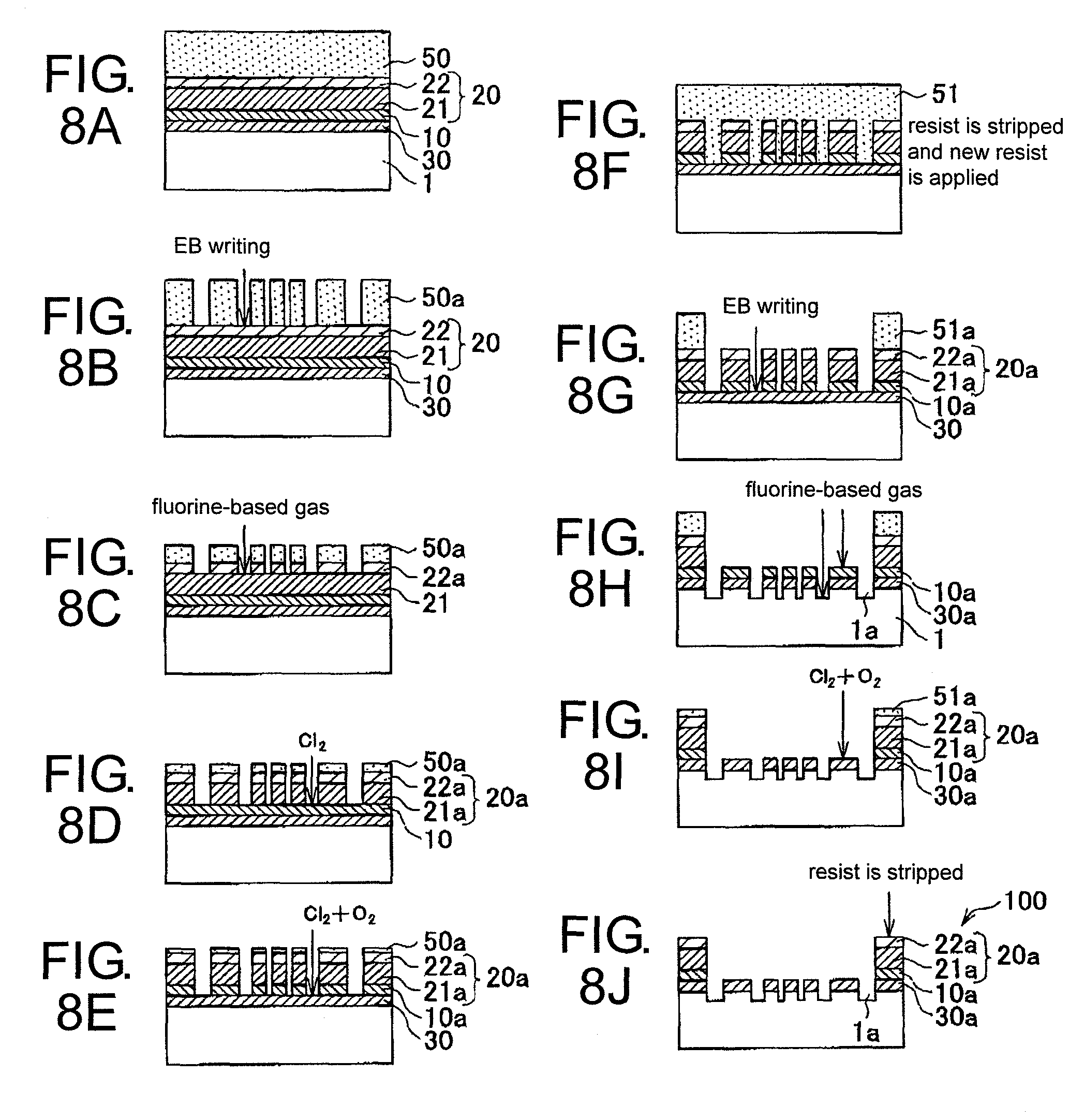 MoSiON −1.4 −7.6 TaN −0.6 +0.8 TaO +0.3 −0.5 (+ represents an increase in thickness) COMPARATIVE EXAMPLE 1