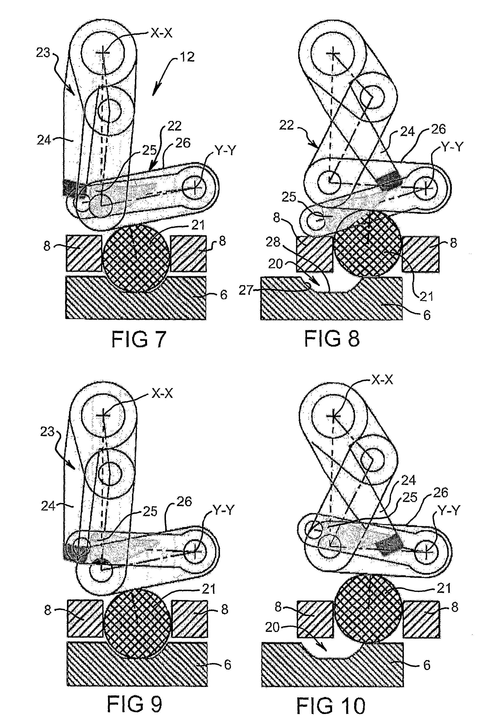 FIG. 8 is a side, elevational diagrammatic view of the retaining means of FIG. 7 in a release condition;