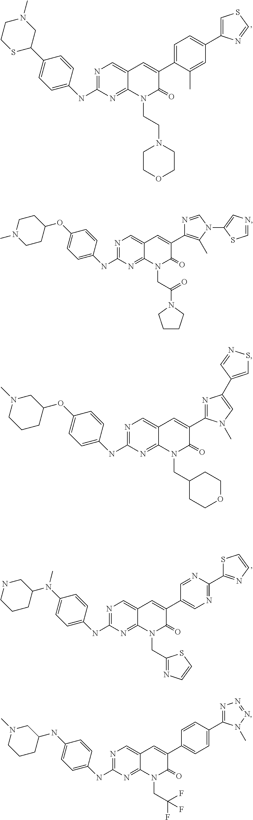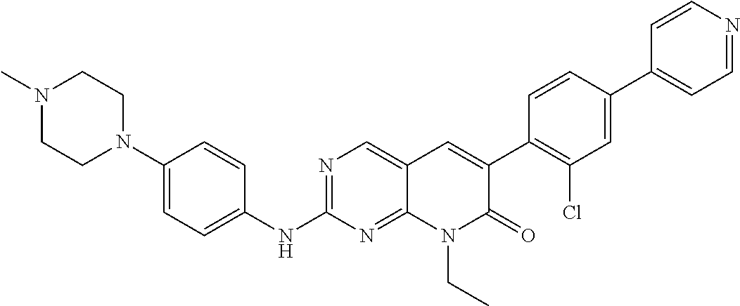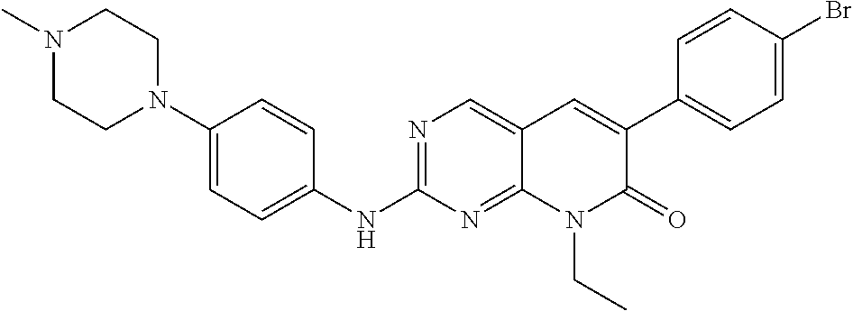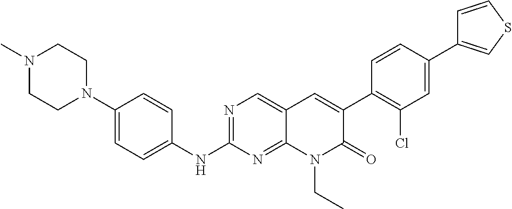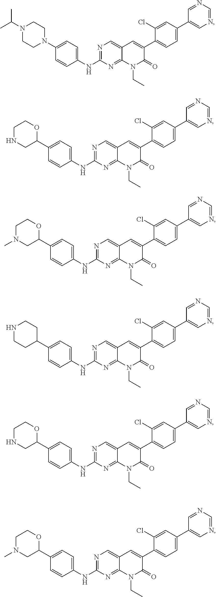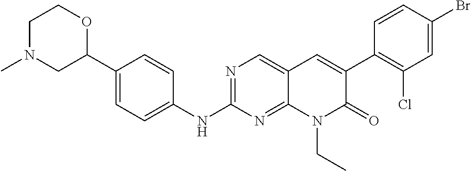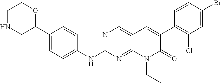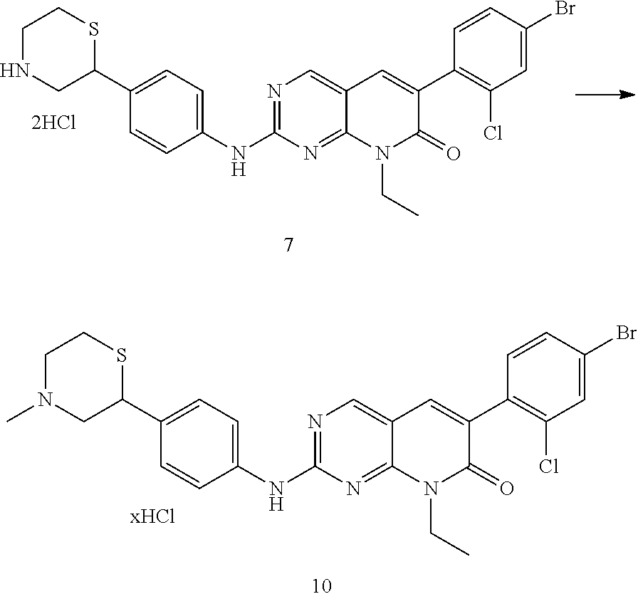 5 519.5 A 519 1.39 6 540.9 A 540 1.38 7 556.9 A 556 1.49 8 570.9 A 572 1.51 9 570.9 A 570 1.68 Intermediate 10: Synthesis of 6-(4-bromo-2-chlorophenyl)-8-ethyl-2-[4-(4-methyl-thiomorpholin-2-yl)-phenylamino]-8H-pyrido[2,3-d]pyrimidin-7-one hydrochloride (2)