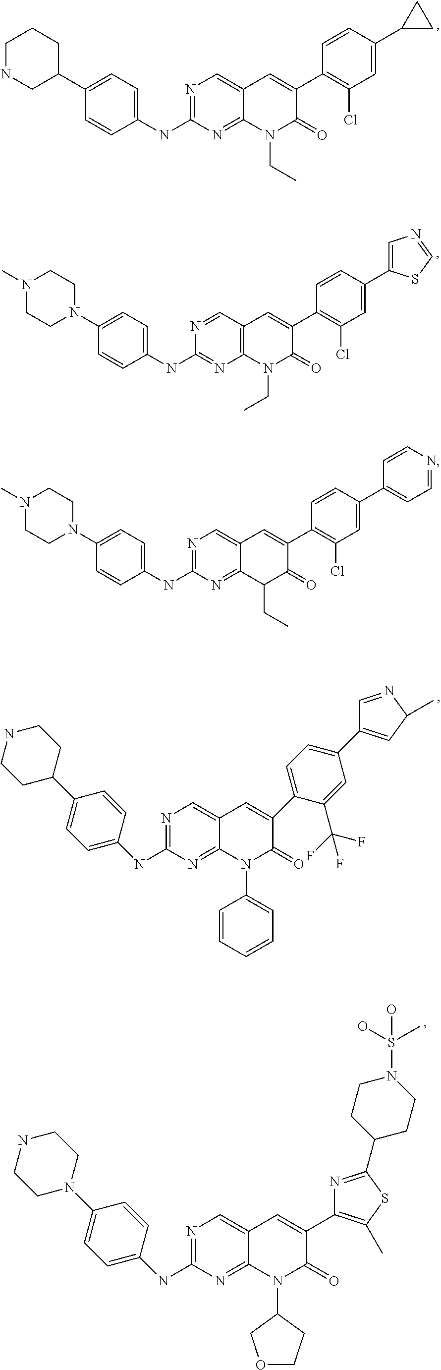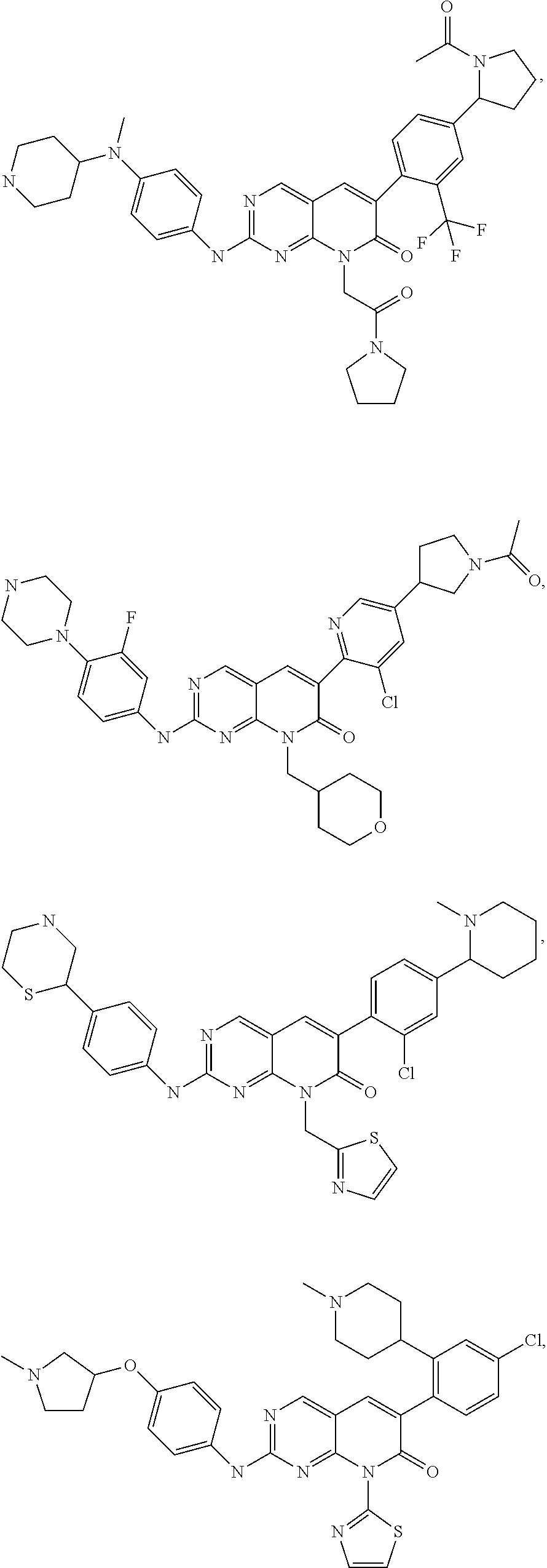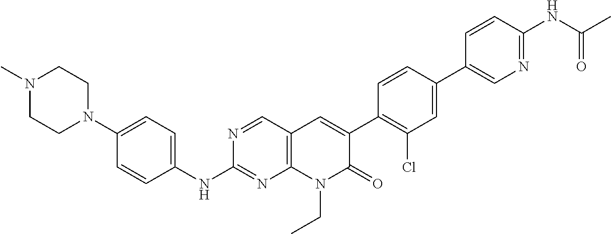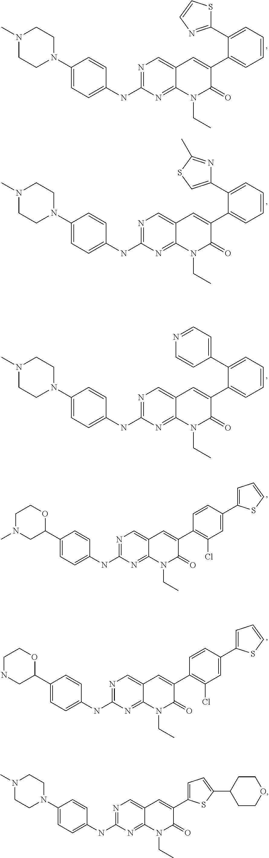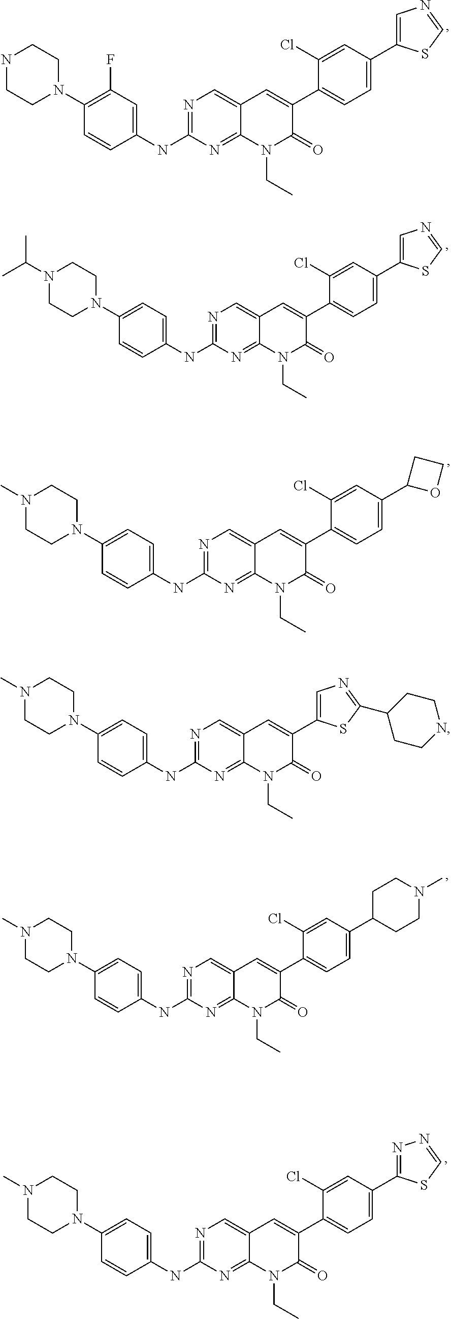5 519.5 A 519 1.39 6 540.9 A 540 1.38 7 556.9 A 556 1.49 8 570.9 A 572 1.51 9 570.9 A 570 1.68 Intermediate 10: Synthesis of 6-(4-bromo-2-chlorophenyl)-8-ethyl-2-[4-(4-methyl-thiomorpholin-2-yl)-phenylamino]-8H-pyrido[2,3-d]pyrimidin-7-one hydrochloride (2)