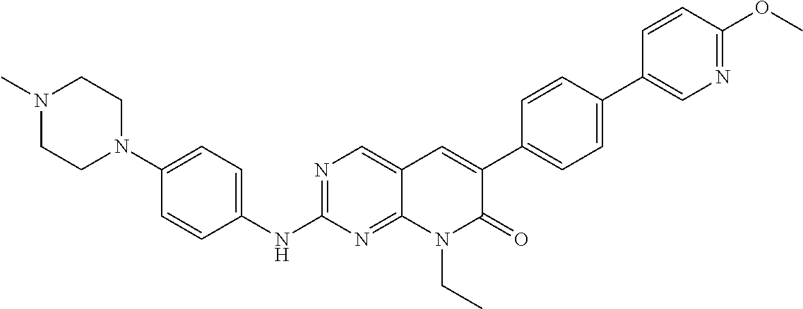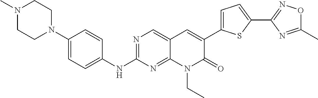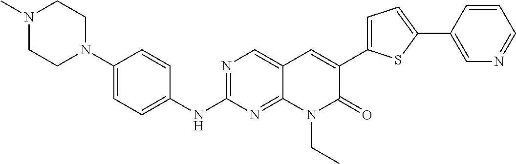 Synthesis of 6-[2,2′]bithiophenyl-5-yl-8-ethyl-2-[4-(4-methyl-piperazin-1-yl)-phenylamino]-8H-pyrido[2,3-d]pyrimidin-7-one. (22)