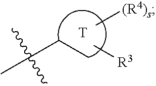 wherein s1 is 0 to 3 and ring T, ring B, R3, R4, R5, Q and r are described previously.