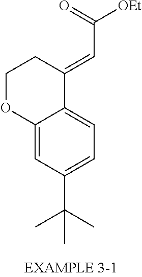 Compound of Example 3 100 g Lactose 137 g Crystalline cellulose 30 g Hydroxypropyl cellulose 15 g Sodium carboxymethyl starch 15 g Magnesium stearate 3 g Hydroxypropylmethyl cellulose 9 g Macrogol 6000 1 g Titanium oxide 2 g Compound of Example 7 50 g Lactose 435 g Magnesium stearate 15 g Compound of Example 9 100 g Lactose 63 g Corn starch 25 g Hydroxypropyl cellulose 10 g Talc 2 g Compound of Example 25 200 g Lactose 790 g Magnesium stearate 10 g Compound of Example 48 100 g Lactose 200 g Crystalline cellulose 100 g Partially α-converted starch 50 g Hydroxypropyl cellulose 50 g Compound of Example 51 0.5 g dl-α-Tocopherol acetate 0.1 g Stearyl glycyrrhetinate 0.05 g Stearic acid 3 g Higher alcohol 1 g Squalane 10 g Octyldodecyl myristate 3 g Trimethylglycine 7 g Antiseptic Proper quantity Saponifier Proper quantity Compound of Example 57 100 g Polyethylene glycol 1500 180 g Polyethylene glycol 4000 720 g EXAMPLES