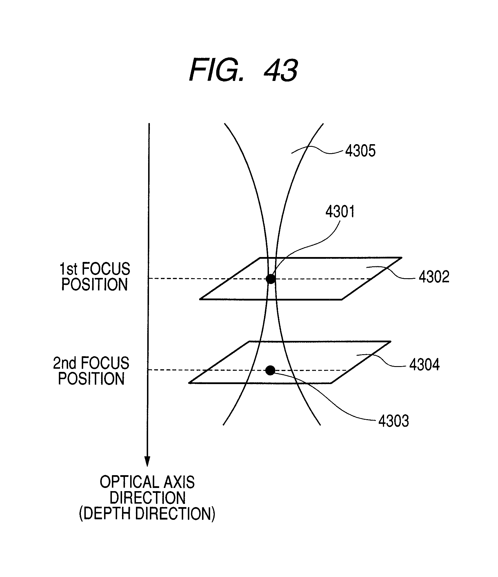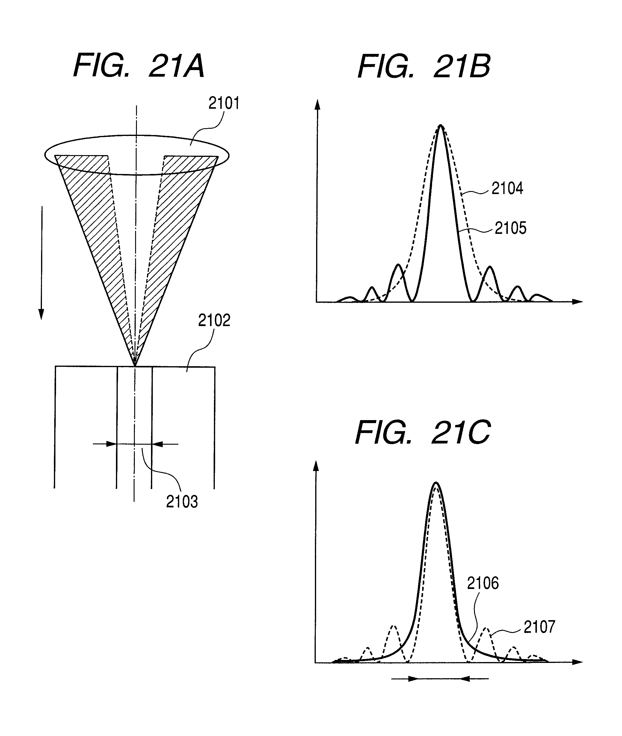 and is in inverse proportion to a numerical aperture NA (Numerical Aperture) of a condensing system such as a lens. Here, k1 is a constant of about 0.5. Furthermore, a depth of focus DOF (Depth of Focus) of a condensing system is expressed as follows: