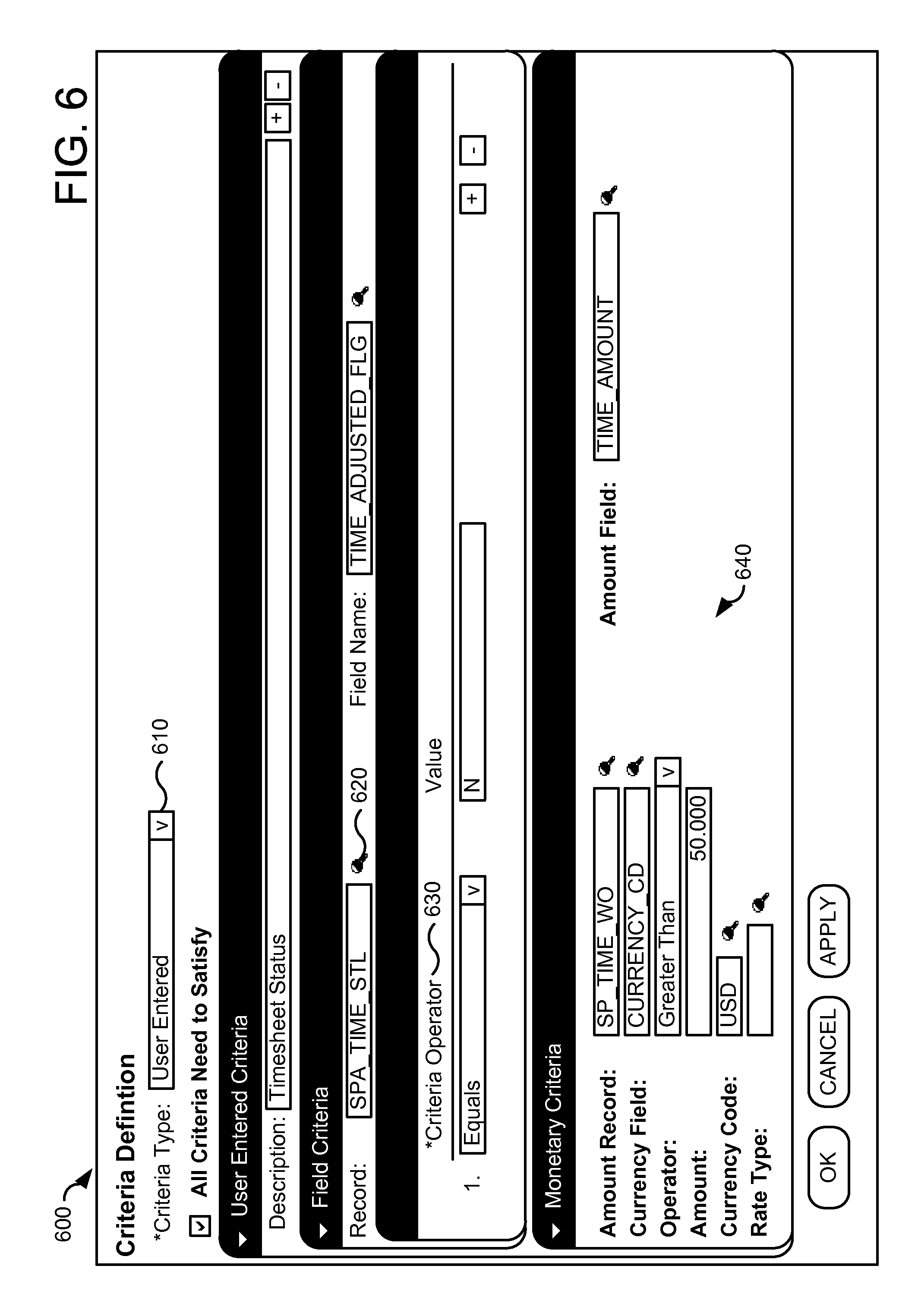 code for generating information configured to display a user interface with at least one or more input fields associated with one or more stages for workflows for processing timesheets, one or more input fields associated with one or more paths in each of the one or more stages, and one or more input fields for each step of each path in each of the one or more stages; code for receiving information via the user interface specifying a set of timesheet approval rules for at least one path of at least one stage of a workflow for processing timesheets, each timesheet approval rule in the set of timesheet approval rules identifying one or more timesheet attributes and specifying one or more conditions that need to be satisfied by timesheet information for the timesheet approval rule to apply to a timesheet represented by the timesheet information; code for storing the set of timesheet approval rules in a database; code for receiving information representing a timesheet, wherein the information representing the timesheet includes a plurality of timesheet attributes and corresponding attribute values; code for applying one or more timesheet approval rules in the set of stored timesheet approval rules to the information representing the timesheet to determine whether the one or more timesheet approval rules are satisfied by the corresponding attribute values of the plurality of timesheet attributes; and code for generating one or more approval notifications to one or more approvers or reviewers based on application of the timesheet approval rules. 14. The non-transitory computer-readable medium of 15. The non-transitory computer-readable medium of 16. The non-transitory computer-readable medium of 17. The non-transitory computer-readable medium of 18. The non-transitory computer-readable medium of 19. The non-transitory computer-readable medium of 20. The non-transitory computer-readable medium of