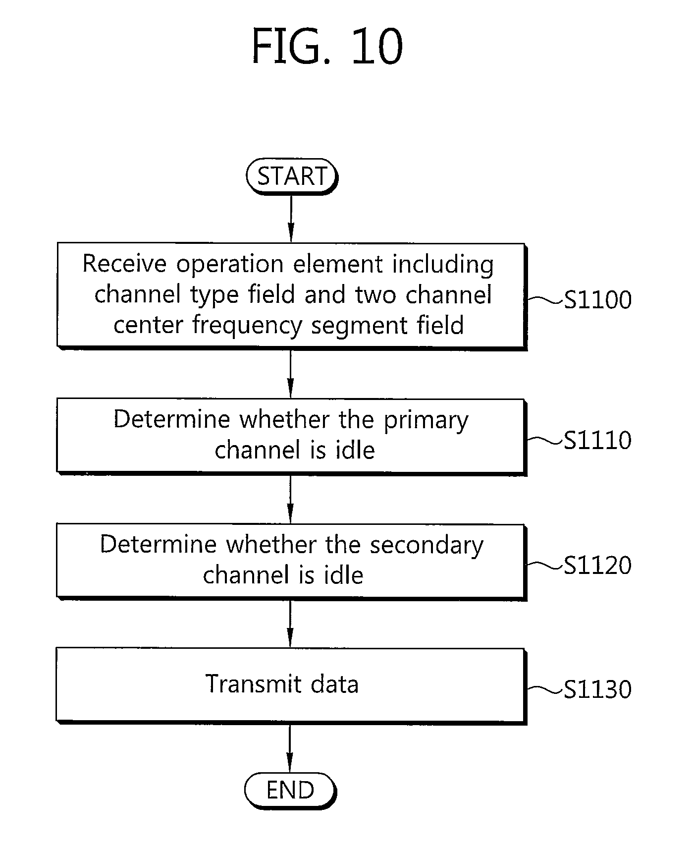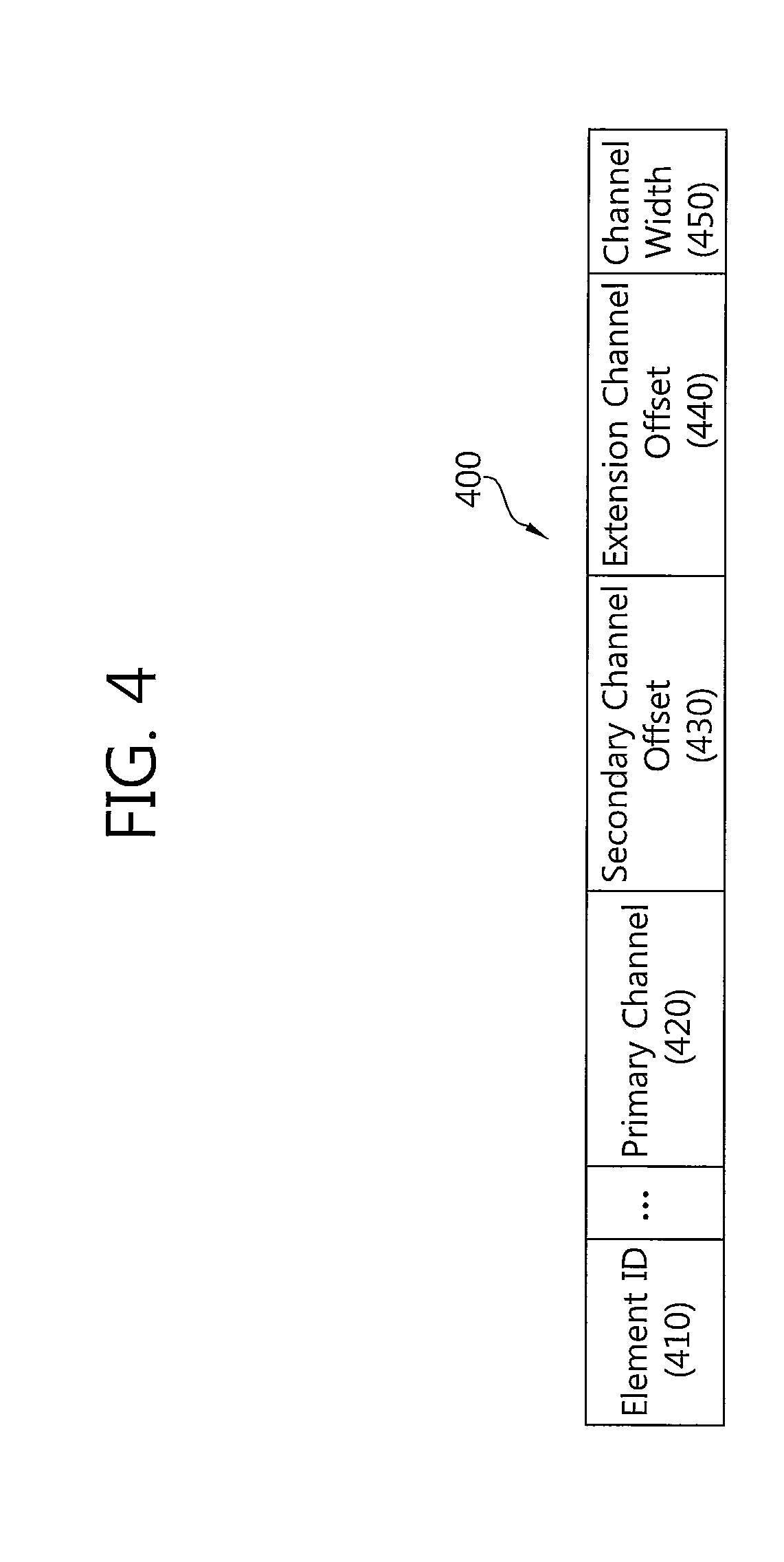 The terms and values represented in Tables 1 and 2 are exemplary and those who skilled in the art can easily change the terms and values. In addition, all the aforementioned fields are not included in the operation element 400. Some of the fields may be omitted or other fields may be added. For example, the operation element 400 may not include the secondary channel offset field 430 if the secondary channel is not used.