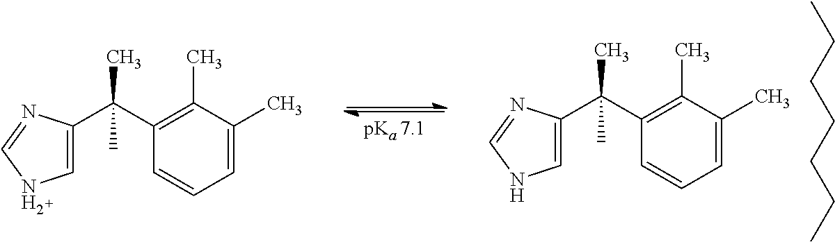 Samples of these compounds were obtained, and solutions were prepared and injected into an HPLC using the Precedex® related substances method. None of these compounds matched the relative retention time of the stopper extractable peaks in Precedex® sample chromatograms. In general, the substances listed above are all too hydrophobic (retained too long on the C18 column with the isocratic mobile phase that is used for the method, 40% aqueous phosphate buffer pH 7.0/60% methanol). Since these peaks were also observed in the chromatograms of Helvoet FM259/O rubber stopper (Helvoet Pharma, Datwyler USA, Pennsauken, N.J.) extract solution, a concentrated stopper extract solution was prepared by first by autoclaving a large number of stoppers in purified water, and then concentrating the extract by liquid-liquid extraction into dichloromethane and then rotovaping and re-suspending the residue into a small volume of methanol/water. LC-UV analysis of this concentrated stopper extract show the same peaks of interest as observed in Precedex® chromatogram, but at much higher levels (approx 100 times larger peak size). This concentrated extract solution was then analyzed by LC-MS using the Waters Q-TOF instrument with the electrospray source in positive ion mode and observed at least one of the peaks of interest in the mass spec TIC chromatogram; the mass spectrum of the peak has been obtained and appears to have what might be the molecular ion peak at m/z 158; exact mass analysis of this peak and its pattern of isotope peaks predicts some empirical formulas. Compounds with these empirical formula and known usage in the rubber industry were tested but without success. Solvent extracts of the stoppers were prepared and analyzed by gas chromatography-mass spectrometry. Analysis revealed the presence of two low molecular weight rubber oligomers previously reported by Helvoet. These oligomers are not commercially available for identification confirmation; however, their hydrophobic character makes it unlikely that they would elute near dexmedetomidine in the related substances HPLC method. A pure extractable sample was isolated by combining multiple fractions collected from repeated HPLC separations of a stopper extract. Attempts to obtain an EI+ mass spectrum by direct probe mass spectrometry and gas chromatography-mass spectrometry were unsuccessful, suggesting that the stopper extractable is nonvolatile and possibly thermally labile. The pure extractable sample was analyzed by IR and elemental analysis. Both of these techniques suggested that the extractable contains only carbon, oxygen and hydrogen. No indication of nitrogen, sulfur or any other heteroatom was observed. The chemical additives that perform variety of functions, including plasticizers, fillers, etc are the most significant source of chemical entities observed as extractables. There are several reasons which makes identifying the extractables challenging and at times impossible. Each functional additive category contains representatives from several molecular structures. For example, consider the category of antidegradants, subcategory antioxidants, which includes aromatic amines, sterically hindered phenols, phosphites, phosphonites, and thioethers. To further complicate the picture, chemical additives are often not pure compounds but mixtures of related structures. For examples “Abietic Acid” which is an organic chemical filler used in certain types of rubber, in reality is a complex mixture of chemical entities, all of which could appear as extractables/leachables. Chemical additives can also react and degrade within the rubber/polymer matrix during or subsequent to compounding process. As an example of this consider, the trivalent phosphorus, or phosphate antioxidant, a common tradename for which is Irgafos 168. This compound reacts with and thereby destroys oxidizing agents, such as hydroperoxides, to form the corresponding pentavalent phosphorus species, or phosphate. In addition to the foregoing, the following must also be considered when analyzing extractables/leachables: Monomers and high molecular weight oligomers derived from incomplete polymerization reactions. Surface residues, such as heavy oils and degreasing agents on the surface of metal canisters and containers. Chemical additives on the surfaces of container closure component fabrication machinery, such as mould release agents, antistatic and antislip agents, etc. The present invention is not to be limited in scope by the specific embodiments described herein. Indeed, various modifications of the invention in addition to those described herein will become apparent to those skilled in the art from the foregoing description. Such modifications are intended to fall within the scope of the appended claims. Patents, patent applications, publications, product descriptions, and protocols are cited throughout this application, the disclosures of which are incorporated herein by reference in their entireties for all purposes.CROSS-REFERENCE TO RELATED APPLICATIONS
