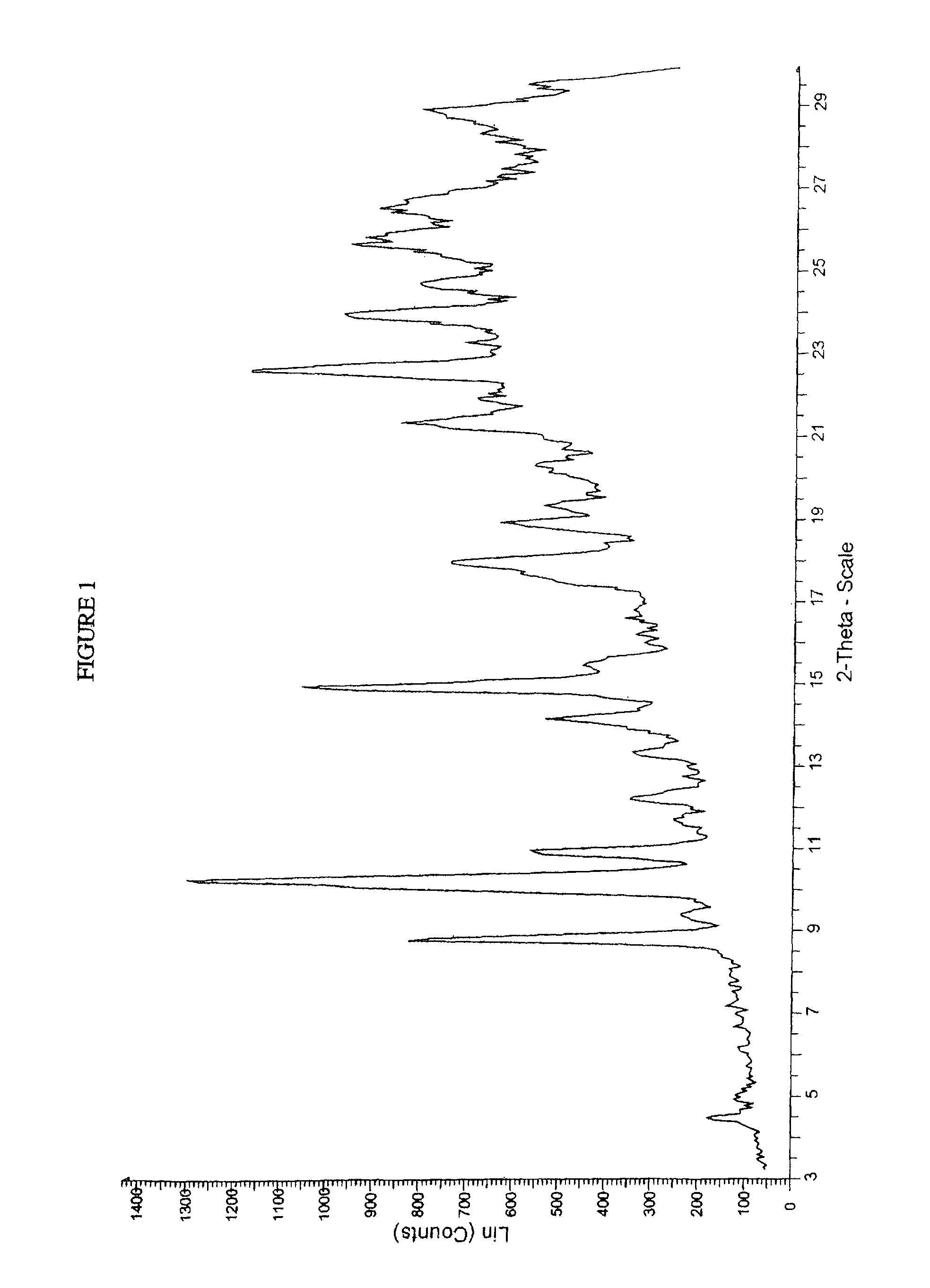 • ii) a Bruker AXS C2 GADDS diffractometer using Cu Kα radiation (40 kV, 40 mA), automated XYZ stage, laser video microscope for auto-sample positioning and a HiStar 2-dimensional area detector. X-ray optics consists of a single Göbel multilayer mirror coupled with a pinhole collimator of 0.3 mm. The beam divergence, i.e. the effective size of the X-ray beam on the sample, is approximately 5 mm. A θ-θ continuous scan mode is employed with a sample, detector distance of 20 cm which gives an effective 2θ range of 3.2°-29.7°. Typically, the sample would be exposed to the X-ray beam for 120 seconds. Samples run under ambient conditions are prepared as flat plate specimens using powder without grinding. Approximately 1-2 mg of the sample is lightly pressed on a glass slide to obtain a flat surface. Samples run under non-ambient conditions are mounted on a silicon wafer with heatconducting compound. The sample is then heated to the appropriate temperature at ca. 20° C. per min and subsequently held isothermally for ca 1 minute before data collection is initiated; or