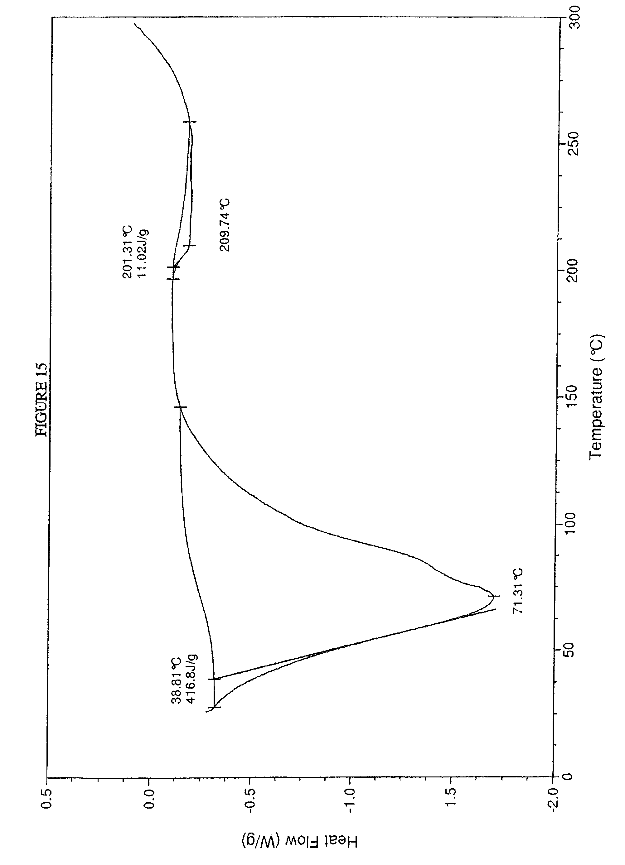 a differential scanning calorimetry (DSC) profile substantially similar to FIG. 15; and
