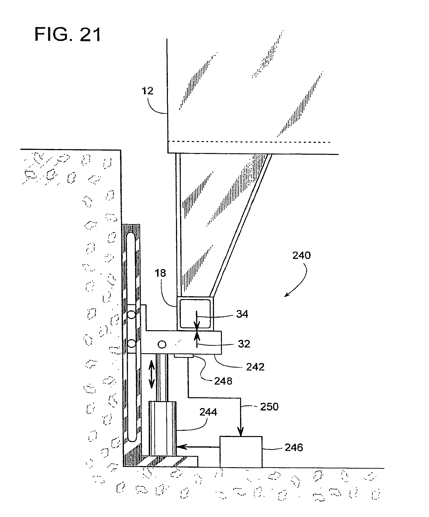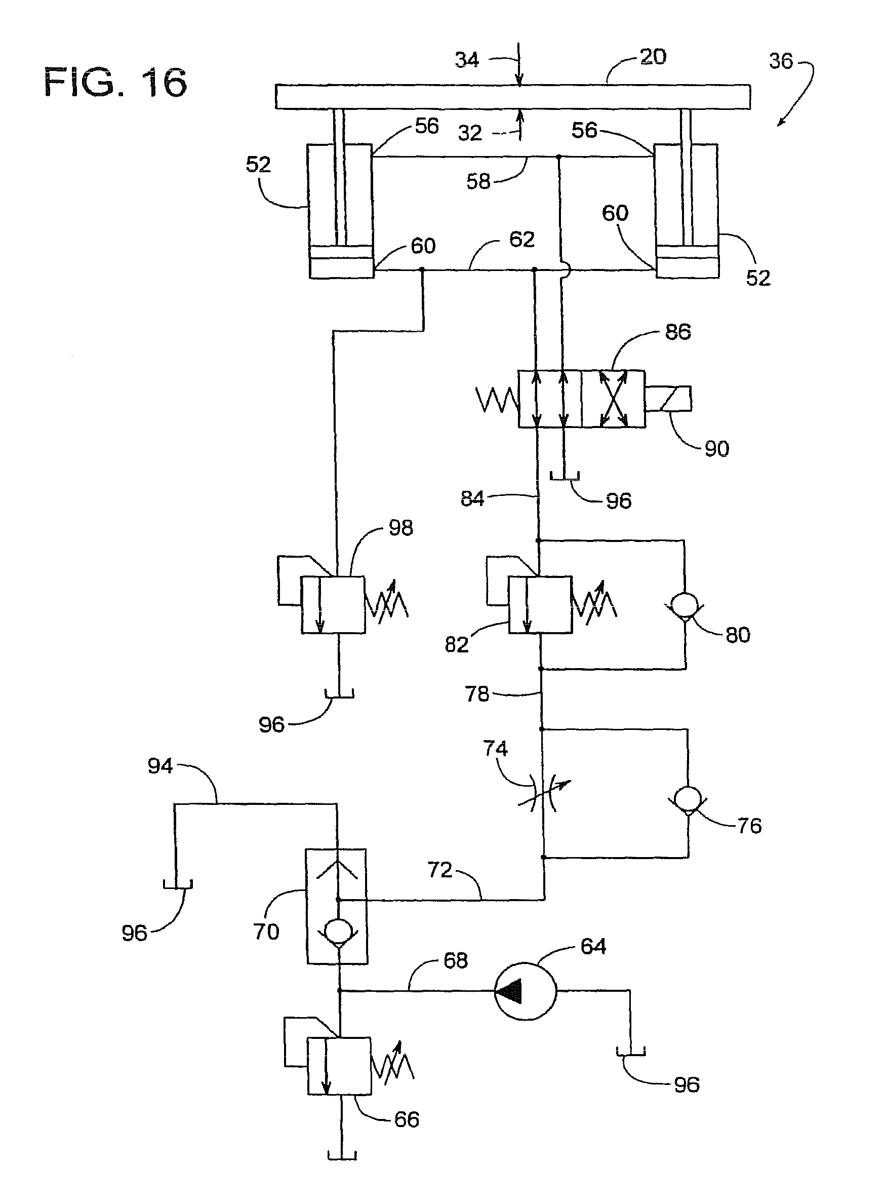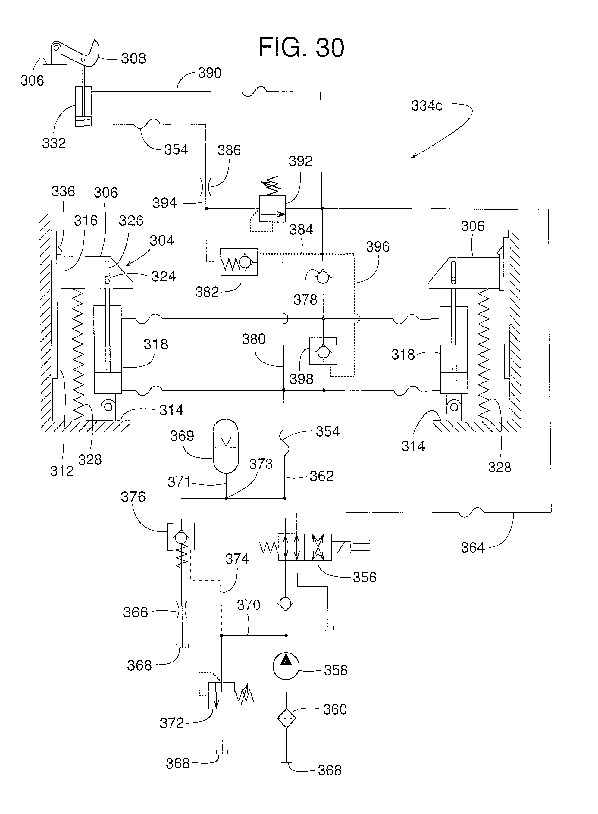 a support member coupled to a base and being movable relative to the base; a first control system comprising a first resilient element to continuously urge the support member toward a preparatory position away from the base, the preparatory position being adjacent the vehicle so that the vehicle is able to exert an applied force against the support member that urges the support member downward from the preparatory position when the vehicle engages the support member and the first control system urges the support member away from the base when the vehicle disengages the support member; and a second control system comprising a second resilient element and an actuator coupled to the support member, the second resilient element operatively coupled to the actuator to enable the support member to exert against the vehicle a first reactive force that opposes the applied force in a first allowable range, and the actuator controlled to exert against the vehicle a second reactive force that opposes the applied force when the applied force exceeds the first allowable range such that the support member appreciably slows a descent of the vehicle when the vehicle moves downwardly, wherein the second control system operates independently from the first control system. 2. The vehicle brace of 3. The vehicle brace of 4. The vehicle brace of 5. The vehicle brace of 6. The vehicle brace of 7. The vehicle brace of 8. The vehicle brace of 9. The vehicle brace of 10. The vehicle brace of