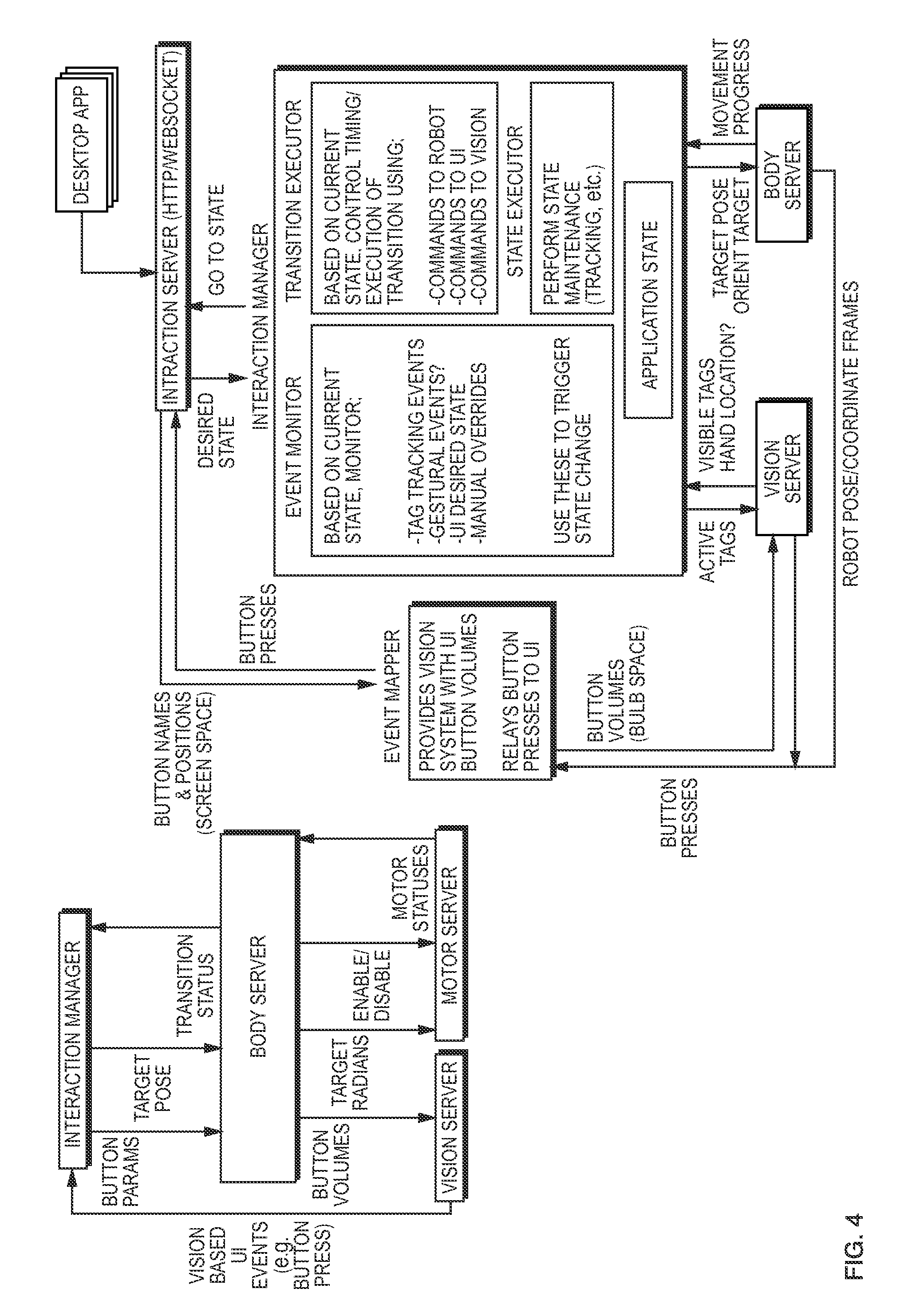 (a) an articulated arm with actuators for moving an I/O device that is attached to the articulated arm; (b) the I/O device, which I/O device comprises (1) a plurality of cameras for capturing visual data, and (2) a projector for projecting a projected multi-pixel image; and (c) at least one processor for