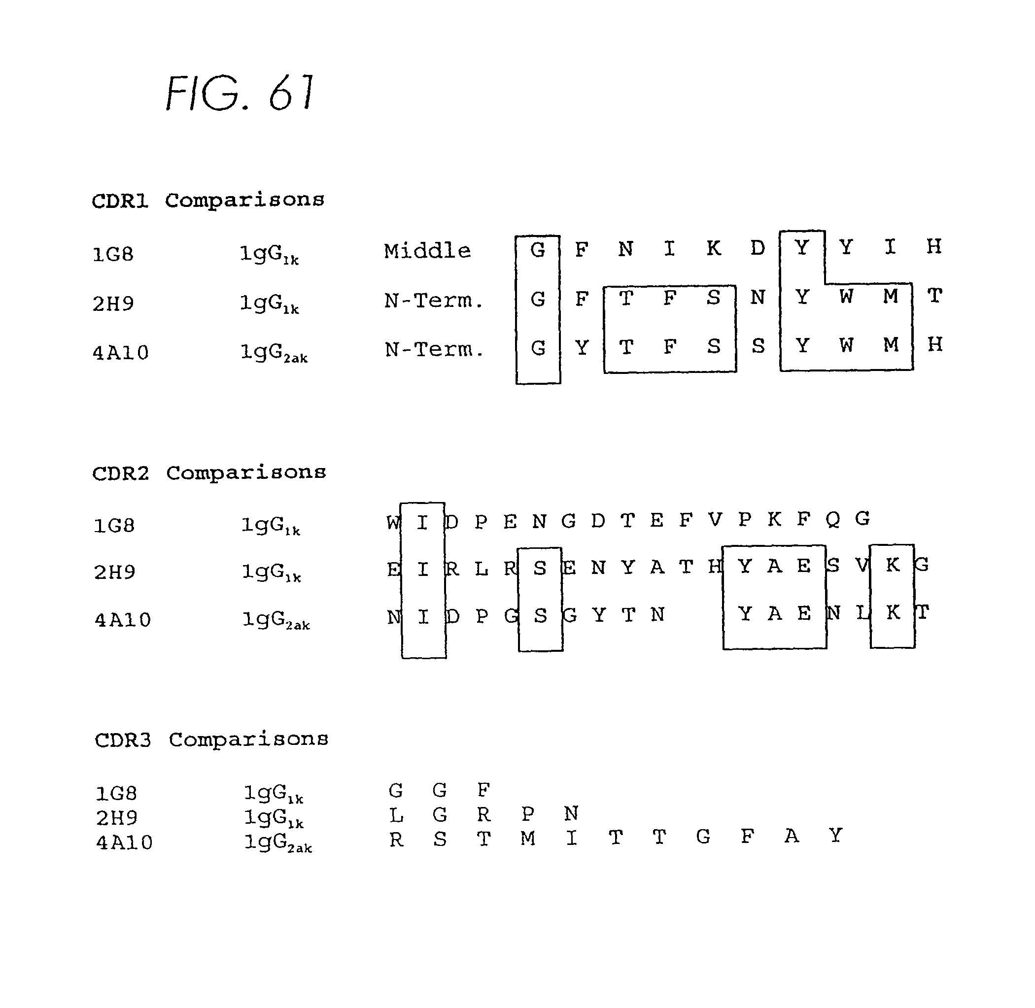 Antibodies of several distinct antigen binding specificities have been manipulated by these protocols to produce chimeric proteins [e.g. anti-TNP: Boulianne et al., These antibodies are capable of binding to PSCA, e.g., on the cell surface of prostate cancer cells, thereby confirming the cell surface localization of PSCA. Because these mAbs recognize epitopes on the exterior of the cell surface, they have utility for prostate cancer diagnosis and therapy. For example, these mAbs were used to locate sites of metastatic disease (Example 6). Another possibility is that they may be used (e.g., systemically) to target prostate cancer cells therapeutically when used alone or conjugated to a radioisotope or other toxin. PSCA mAbs stain the cell surface in a punctate manner (see Example 5), suggesting that PSCA may be localized to specific regions of the cell surface. GPI-anchored proteins are known to cluster in detergent-insoluble glycolipid-enriched microdomains (DIGS) of, the cell surface. These microdomains, which include caveolae and shingolipid-cholesterol rafts, are believed to play critical roles in signal transduction and molecular transport. Thy-1, a homologue of PSCA, has previously been shown to transmit signals to src kinases through interaction in lipid-microdomains. Subcellular fractionation experiments in our laboratory confirm the presence of PSCA in DIGS. Additionally, some of the antibodies of the invention are internalizing antibodies, i.e., the antibodies are internalized into the cell upon or after binding. It is intended that the term “internalize” means that the antibody is taken into the cell. Further, some of the antibodies induce inhibition of PSCA positive cancer cell growth. A characterization of these antibodies, e.g., in prostate cancer specimens, demonstrates that PSCA protein is overexpressed in prostate cancers relative to normal cells and its expression appears to be upregulated during prostate cancer progression and metastasis. These antibodies are useful in studies of PSCA biology and function, as well as in vivo targeting of PSCA associated cancers, including, without limitation, human prostate cancer, prostate cancer metastases to bone, bladder carcinomas, and pancreatic carcinomas. PSCA mAbs which specifically recognize and bind to the extracellular domain of the PSCA protein are described herein. Some of these have been shown to bind to native PSCA as expressed on the cell surface and some have been shown to inhibit the in vivo growth of prostate tumor cells. The amino acid sequence of PSCA presented herein may be used to select specific regions of the PSCA protein for generating antibodies. For example, hydrophobicity and hydrophilicity analyses of the PSCA amino acid sequence may be used to identify hydrophilic regions in the PSCA structure. Regions of the PSCA protein that show immunogenic structure, as well as other regions and domains, can readily be identified using various other methods known in the art, such as Chou-Fasman, Garnier-Robson, Kyte-Doolittle, Eisenberg, Karplus-Schultz or Jameson-Wolf analysis. Fragments containing these residues are particularly suited in generating specific classes of anti-PSCA antibodies. Particularly useful fragments include, but are not limited to, the sequences TARIRAVGLLTVISK (SEQ ID NO:9) and SLNCVDDSQDYYVGK (SEQ ID NO:11). As described in Example 2, below, a rabbit polyclonal antibody was generated against the former fragment, prepared as a synthetic peptide, and affinity purified using a PSCA-glutathione S transferase fusion protein. Recognition of PSCA by this antibody was established by immunoblot and immunoprecipitation analysis of extracts of 293T cells transfected with PSCA and a GST-PSCA fusion protein. This antibody also identified the cell surface expression of PSCA in PSCA-transfected 293T and LAPC-4 cells using fluorescence activated cell sorting (FACS). Additionally, a sheep polyclonal antibody was generated against the latter fragment, prepared as a synthetic peptide, and affinity purified using a peptide Affi-gel column (also by the method of Example 2). Recognition of PSCA by this antibody was established by immunoblot and immunoprecipitation analysis of extracts of LNCaP cells transfected with PSCA. This antibody also identified the cell surface expression of PSCA in PSCA-transfected LNCaP cells using fluorescence activated cell sorting (FACS) and immunohistochemistry analysis. Methods for preparing a protein for use as an immunogen and for preparing immunogenic conjugates of a protein with a carrier such as BSA, KLH, or other carrier proteins are well known in the art. In some circumstances, direct conjugation using, for example, carbodiimide reagents may be used; in other instances linking reagents such as those supplied by Pierce Chemical Co., Rockford, Ill., may be effective. Administration of a PSCA immunogen is conducted generally by injection over a suitable time period and with use of a suitable adjuvant, as is generally understood in the art. During the immunization schedule, titers of antibodies can be taken to determine adequacy of antibody formation. While the polyclonal antisera produced in this way may be satisfactory for some applications, for pharmaceutical compositions, monoclonal antibody preparations are preferred. Immortalized cell lines which secrete a desired monoclonal antibody may be prepared using the standard method of Kohler and Milstein or modifications which effect immortalization of lymphocytes or spleen cells, as is generally known. The immortalized cell lines secreting the desired antibodies are screened by immunoassay in which the antigen is the PSCA protein or PSCA fragment. When the appropriate immortalized cell culture secreting the desired antibody is identified, the cells can be cultured either in vitro or by production in ascites fluid. The desired monoclonal antibodies are then recovered from the culture supernatant or from the ascites supernatant. 