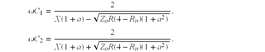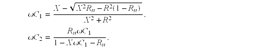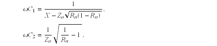 Impedance Matching Networks In applications, the driven load may have impedance that is very different from the characteristic impedance of the external driving circuit, to which it is connected. Furthermore, the driven load may not be a resonant network. An Impedance Matching Network (IMN) is a circuit network that may be connected before a load as in For an arrangement shown in Methods for Tunable Impedance Matching of a Variable Load In embodiments where the load may be variable, impedance matching between the load and the external driving circuit, such as a linear or switching power amplifier, may be achieved by using adjustable/tunable components in the IMN circuit that may be adjusted to match the varying load to the fixed characteristic impedance Zoof the external circuit (FIG. 107( In embodiments, the load may be inductive (such as a resonator coil) with impedance R+jωL, so the two tunable elements in the IMN circuit may be two tunable capacitance networks or one tunable capacitance network and one tunable inductance network or one tunable capacitance network and one tunable mutual inductance network. In embodiments where the load may be variable, the impedance matching between the load and the driving circuit, such as a linear or switching power amplifier, may be achieved by using adjustable/tunable components or parameters in the amplifier circuit that may be adjusted to match the characteristic impedance Zoof the amplifier to the varying (due to load variations) input impedance of the network consisting of the IMN circuit and the load (IMN+load), where the IMN circuit may also be tunable ( In embodiments, the tunable elements or parameters in the power amplifier may be the frequency, amplitude, phase, waveform, duty cycle and the like of the drive signals applied to transistors, switches, diodes and the like. In embodiments, the power amplifier with tunable characteristic impedance may be a tunable switching amplifier of class D, E, F or any combinations thereof. Combining Equations (1) and (2), the impedance matching conditions for this network are