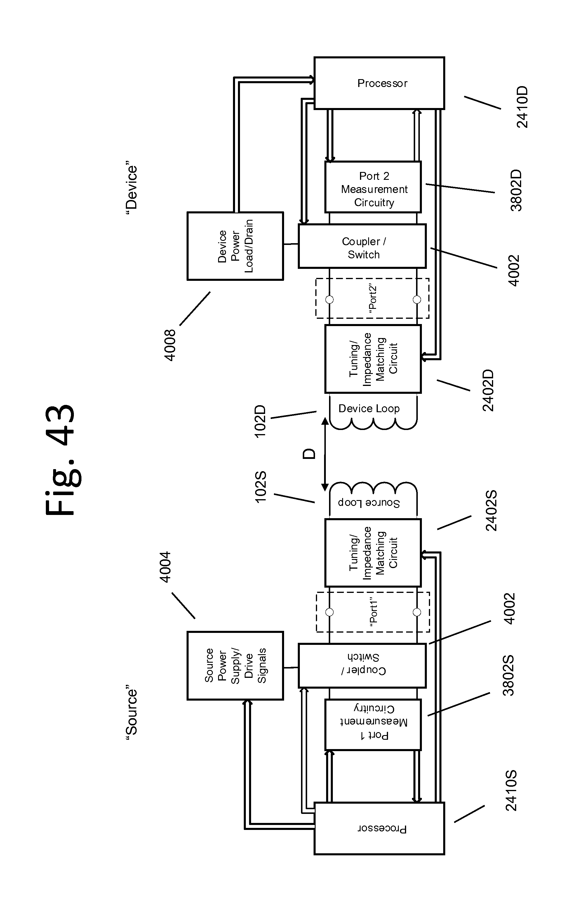 We have achieved a working system by repeating steps 1-4 until both (Re{S11}, Im{S11}) and (Re{S22}, Im{S22}) converge to ((Z0+/−∈Re), (+/−∈Im)) at ωo, where Z0is the desired matching impedance and ωois the desired operating frequency. Here, ∈Imrepresents the maximum deviation of the imaginary part, at ωo, from the desired value of 0, and ∈Rerepresents the maximum deviation of the real part from the desired value of Z0. It is understood that ∈Imand ∈Recan be adjusted to increase or decrease the number of steps to convergence at the potential cost of system performance (efficiency). It is also understood that steps 1-4 can be performed in a variety of sequences and a variety of ways other than that outlined above (i.e. first adjust the source imaginary part, then the source real part; or first adjust the device real part, then the device imaginary part, etc.) The intermediate impedances Z1and Z2may be adjusted during steps 1-4 to reduce the number of steps required for convergence. The desire or target impedance value may be complex, and may vary in time or under different operating scenarios. Steps 1-4 may be performed in any order, in any combination and any number of times. Having described the above algorithm, variations to the steps or the described implementation may be apparent to one of ordinary skill in the art. The algorithm outlined above may be implemented with any equivalent linear network port parameter measurements (i.e., Z-parameters, Y-parameters, T-parameters, H-parameters, ABCD-parameters, etc.) or other monitor signals described above, in the same way that impedance or admittance can be alternatively used to analyze a linear circuit to derive the same result. The resonators may need to be retuned owing to changes in the “loaded” resistances, Rs and Rd, caused by changes in the mutual inductance M (coupling) between the source and device resonators. Changes in the inductances, Ls and Ld, of the inductive elements themselves may be caused by the influence of external objects, as discussed earlier, and may also require compensation. Such variations may be mitigated by the adjustment algorithm described above. A directional coupler or a switch may be used to connect the port parameter measurement circuitry to the source resonator and tuning/adjustment circuitry. The port parameter measurement circuitry may measure properties of the magnetic resonator while it is exchanging power in a wireless power transmission system, or it may be switched out of the circuit during system operation. The port parameter measurement circuitry may measure the parameters and the processor may control certain tunable elements of the magnetic resonator at start-up, or at certain intervals, or in response to changes in certain system operating parameters. A wireless power transmission system may include circuitry to vary or tune the impedance and/or resonant frequency of source and device resonators. Note that while tuning circuitry is shown in both the source and device resonators, the circuitry may instead be included in only the source or the device resonators, or the circuitry may be included in only some of the source and/or device resonators. Note too that while we may refer to the circuitry as “tuning” the impedance and or resonant frequency of the resonators, this tuning operation simply means that various electrical parameters such as the inductance or capacitance of the structure are being varied. In some cases, these parameters may be varied to achieve a specific predetermined value, in other cases they may be varied in response to a control algorithm or to stabilize a target performance value that is changing. In some cases, the parameters are varied as a function of temperature, of other sources or devices in the area, of the environment, at the like. Applications For each listed application, it will be understood by one of ordinary skill-in-the-art that there are a variety of ways that the resonator structures used to enable wireless power transmission may be connected or integrated with the objects that are supplying or being powered. The resonator may be physically separate from the source and device objects. The resonator may supply or remove power from an object using traditional inductive techniques or through direct electrical connection, with a wire or cable for example. The electrical connection may be from the resonator output to the AC or DC power input port on the object. The electrical connection may be from the output power port of an object to the resonator input. Continuing with the example of the laptop, and without limitation, the device resonator may be physically connected to the device it is powering or charging. For example, as shown in The source resonator may be physically connected to the source supplying the power to the system. As described above for the devices and device resonators, there are a variety of ways the resonators may be attached to, connected to or integrated with the power supply. One of ordinary skill in the art will understand that there are a variety of ways the resonators may be integrated in the wireless power transmission system, and that the sources and devices may utilize similar or different integration techniques. Continuing again with the example of the laptop computer, and without limitation, the laptop computer may be powered, charged or recharged by a wireless power transmission system. A source resonator may be used to supply wireless power and a device resonator may be used to capture the wireless power. A device resonator 5002 may be integrated into the edge of the screen (display) as illustrated in In some systems, the source, or source resonator may be movable or active and may track, follow, or attach to the source or source resonator. For a movable device it may be preferable to maintain alignment between the source resonator and the device resonator to maximize power transfer efficiency. As a d