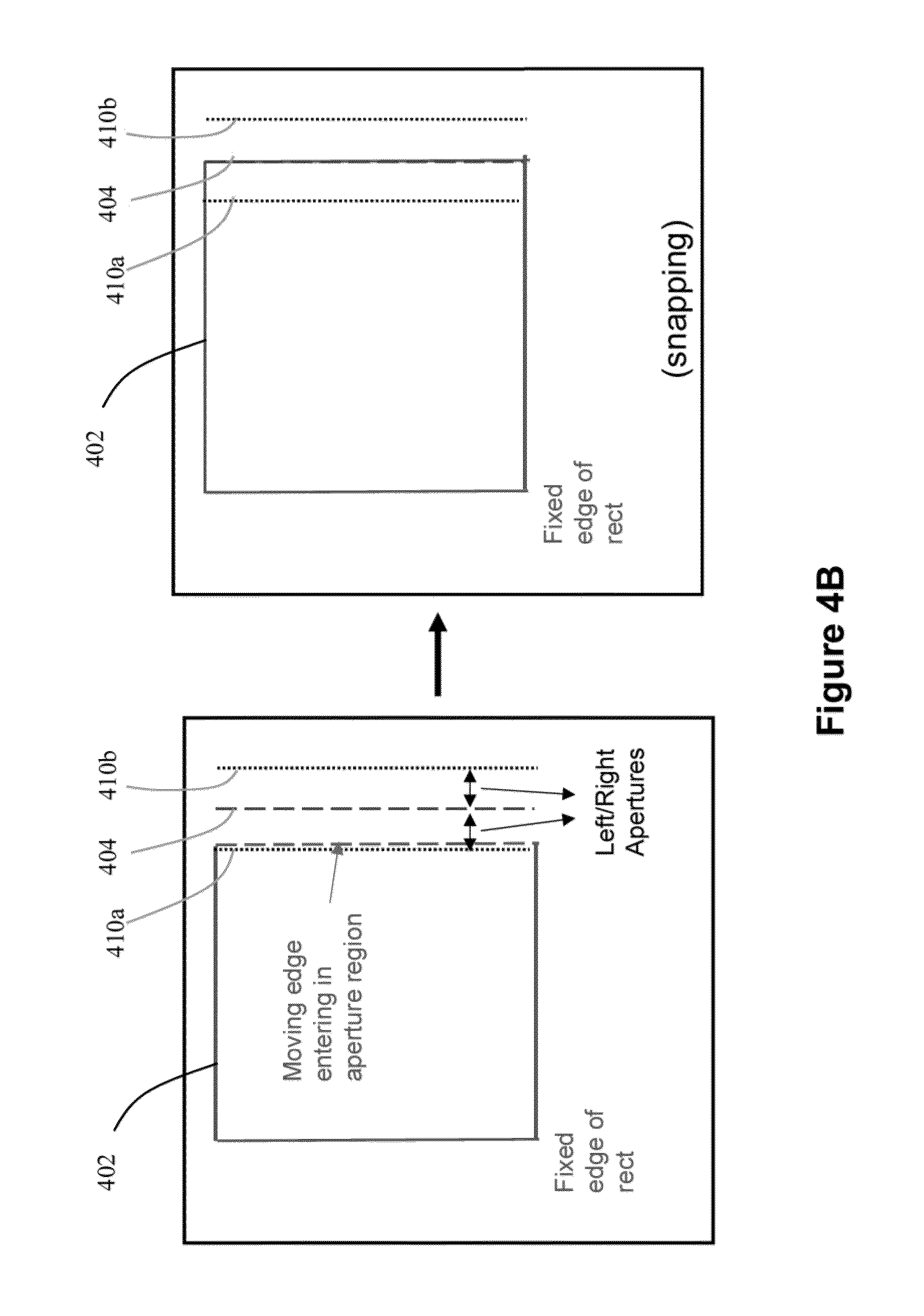 the visual indicator includes a ghosted image of at least a portion of the object when at least a part of the object falls within an aperture range; and controllably permitting either an invalid object configuration or automatic implementation of the valid object configuration. 12. The computer program product of 13. The computer program product of 14. The computer program product of 15. The computer program product of 16. The computer program product of 17. The computer program product of 18. The computer program product of 19. The computer program product of 20. The computer program product of 21. A system, comprising: