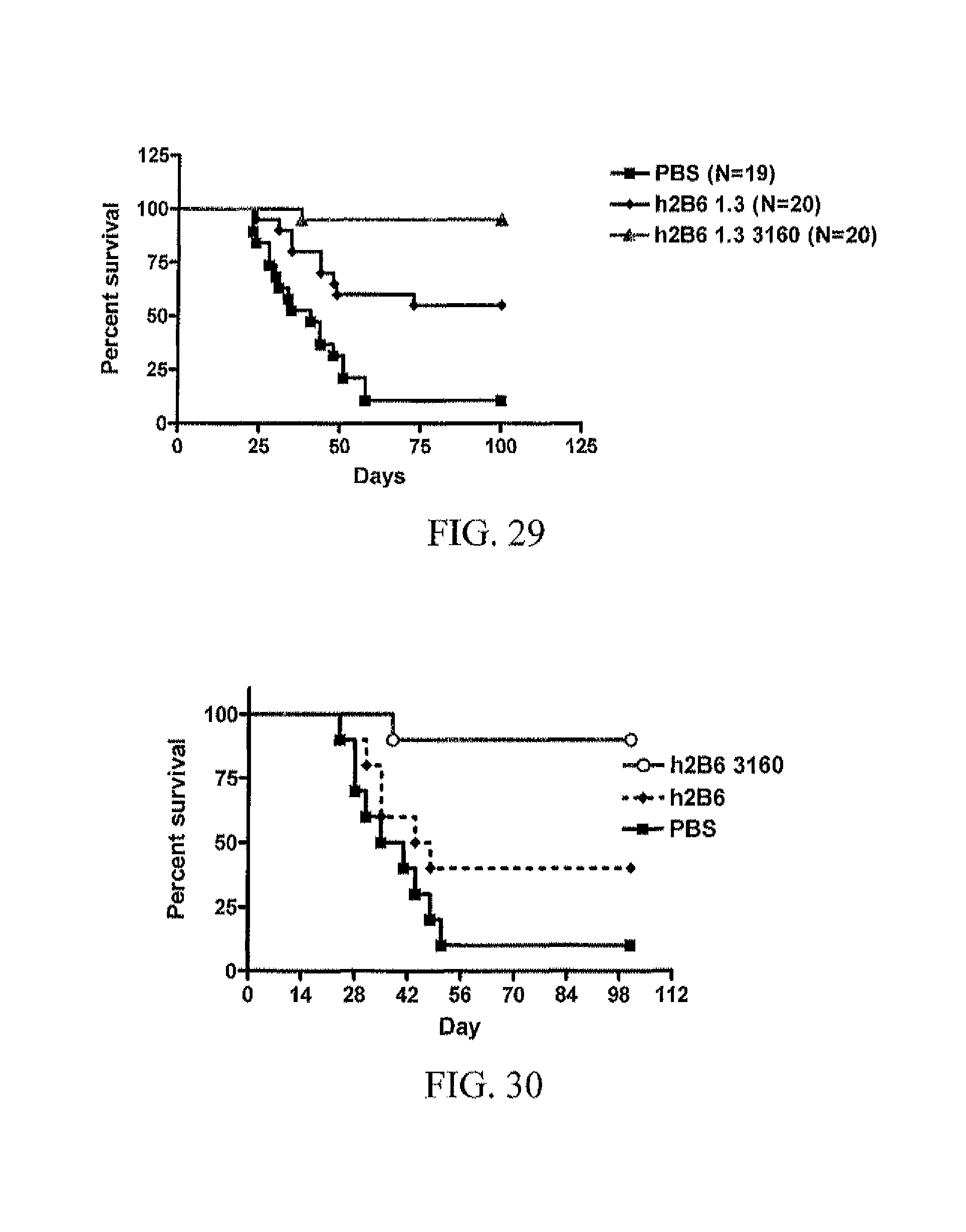 Still more particularly preferred variants include one or more modifications selected from Groups 1-105 of Table 4: Effector function can be modified by techniques such as those described in the Antibody Engineering Technology Art, or by other means. For example, cysteine residue(s) may be introduced in the Fc region, thereby allowing interchain disulfide bond formation in this region, resulting in the generation of a homodimeric antibody that may have improved internalization capability and/or increased complement-mediated cell killing and ADCC. See Caron et al. (1992) J. Exp Med. 176:1191-1195; and B. Shopes (1992) J. Immunol. 148:2918-2922. Homodimeric antibodies with enhanced anti-tumor activity may also be prepared using heterobifunctional cross-linkers as described in Wolff et al. (1993) Cancer Research 53:2560-2565. Alternatively, an antibody can be engineered which has dual Fc regions and may thereby have enhanced complement lysis and ADCC capabilities. Stevenson et al. (1989) Anti-Cancer Drug Design 3:219-230. The affinities and binding properties of the molecules of the invention for an FcγR are initially determined using in vitro assays (biochemical or immunological based assays) known in the art for determining Fc-FcγR interactions, i.e., specific binding of an Fc region to an FcγR including but not limited to ELISA assay, surface plasmon resonance assay, immunoprecipitation assays (See Section 6.2.2). Preferably, the binding properties of the molecules of the invention are also characterized by in vitro functional assays for determining one or more FcγR mediator effector cell functions (See Section 6.2.2). In most preferred embodiments, the molecules of the invention have similar binding properties in in vivo models (such as those described and disclosed herein) as those in in vitro based assays. However, the present invention does not exclude molecules of the invention that do not exhibit the desired phenotype in in vitro based assays but do exhibit the desired phenotype in vivo. In some embodiments, the molecules of the invention comprising a variant Fc region comprise at least one amino acid modification in the CH3 domain of the Fc region, which is defined as extending from amino acids 342-447. In other embodiments, the molecules of the invention comprising a variant Fc region comprise at least one amino acid modification in the CH2 domain of the Fc region, which is defined as extending from amino acids 231-341. In some embodiments, the molecules of the invention comprise at least two amino acid modifications, wherein one modification is in the CH3 region and one modification is in the CH2 region. The invention further encompasses amino acid modification in the hinge region. Molecules of the invention with one or more amino acid modifications in the CH2and/or CH3 domains have altered affinities for an FcγR as determined using methods described herein or known to one skilled in the art. In a particular embodiment, the invention encompasses amino acid modification in the CH1 domain of the Fc region. In particularly preferred embodiments, the invention encompasses molecules comprising a variant Fc region wherein said variant has an increased binding to FcγRIIA (CD32A) and/or an increased ADCC activity, as measured using methods known to one skilled in the art and exemplified herein. The ADCC assays used in accordance with the methods of the invention may be NK dependent or macrophage dependent. The Fc variants of the present invention may be combined with other known Fc modifications including but not limited to modifications which alter effector function and modification which alter FcγR binding affinity. In a particular embodiment, an Fc variant of the invention comprising a first amino acid modification in the CH3 domain. CH2 domain or the hinge region may be combined with a second Fc modification such that the second Fc modification is not in the same domain as the first so that the first Fc modification confers an additive, synergistic or novel property on the second Fc modification. In some embodiments, the Fc variants of the invention do not have any amino acid modification in the CH2 domain. In a preferred specific embodiment, the invention encompasses a molecule comprising a variant Fc region, wherein said variant Fc region comprises at least one amino acid modification relative to a wild-type Fc region, such that said molecule has an altered affinity for an FcγR, provided that said variant Fc region does not have a substitution at positions that make a direct contact with FcγR based on crystallographic and structural analysis of Fc-FcγR interactions such as those disclosed by Sondermann et al., 2000 ( The FcγR interacting domain maps to the lower hinge region and select sites within the CH2 and CH3 domains of the IgG heavy chain. Amino acid residues flanking the actual contact positions and amino acid residues in the CH3 domain play a role in IgG/FcγR interactions as indicated by mutagenesis studies and studies using small peptide inhibitors, respectively (Sondermann et al., 2000 In another preferred embodiment, the invention encompasses a molecule comprising a variant Fc region, wherein said variant Fc region comprises at least one amino acid modification relative to a wild-type Fc region, such that said molecule binds an FcγR via the Fc region with an altered affinity relative to a molecule comprising a wild-type Fc region, provided that said variant Fc region does not have or is not solely a substitution at any of positions 255, 256, 258, 267, 268, 269, 270, 272, 276, 278, 280, 283, 285, 286, 289, 290, 292, 293, 294, 295, 296, 298, 300, 301, 303, 305, 307, 309, 312, 320, 322, 326, 329, 330, 332, 331, 333, 334, 335, 337, 338, 339, 340, 359, 360, 373, 376, 416, 419, 430, 434, 435, 437, 438, 439. In a specific embodiment, the invention encompasses a molecule comprising a variant Fc region, wherein said variant Fc region comprises at least one amino aci