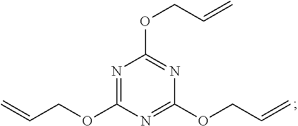 R1is —(CH2)2—O—(CH2)2—O—(CH2)2—; p is 2; R2is —(CH2)2—; m is 2; and n is an integer from 1 to 60; B represents a core of a z-valent, alkenyl-terminated polyfunctionalizing agent B(—V)zwherein:
