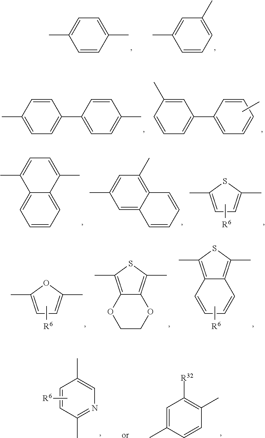 u* (IIIa) is an idealized representation of the polymer products obtained, for example, via the Suzuki polymerization procedure. Simultaneous polymerization of monomers A, B, D and E results in a statistical copolymer consisting of randomly ordered units