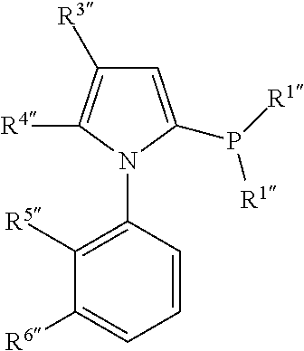 Cpd. R1″ R5″ R6″ R3″ R4″ A-1 H H H H A-2 cyclohexyl H H H H A-3 phenyl H H H H A-4 adamantyl H H H H A-5 cyclohexyl —OCH3 H H H A-6 cyclohexyl 1) 1) H H A-7 1) 1) H H A-8 phenyl 1) 1) H H A-9 adamantyl 1) 1) H H A-10 cyclohexyl H H 2) 2) A-11 H H 2) 2) A-12 phenyl H H 2) 2) A-13 adamantyl H H 2) 2)