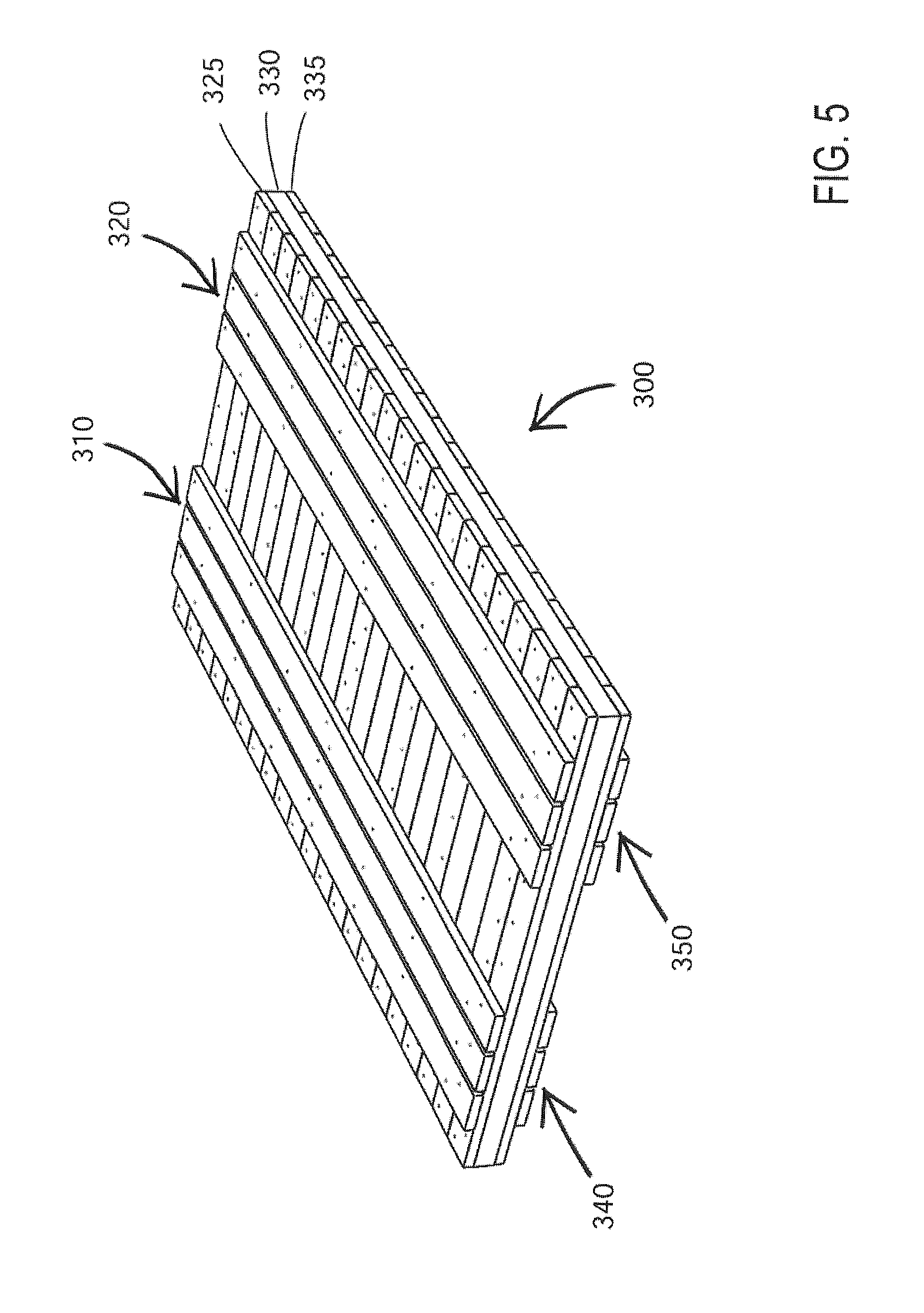 The preferred types of engineered lumber are laminated strand lumber (LSL) layered veneer laminate (LVL). The thickness of these lumber beams will be what is called 2×8 inches, which is actually approximately 1.75 inches thick but may be between 1.5 and 3 inches. Length can be as desired but will preferably be 12, 14 or 16 feet. The width of the LSL or LVL boards will vary depending upon location within the three layer mat. That is, width of the top and bottom layer boards will be approximately 8 inches (single width) or 16 inches (double width). Approximately means they may be slightly less such as 7.5 to 8.5 inches or 15 to 17 inches. Of course, as the LSL or LVL is manufactured, any particular thickness, width and length can be selected, but the preferred dimensions disclosed herein approximate those of conventional white oak mats which are in extensive use in the industry. A typical thickness for the mat is approximately 6″ to 8″, with the central layer providing a thickness of about 1″ about 6″ and preferably about 2 to about 4″ and the upper and lower layers providing a thickness of about 1″ to about 3″. Of course, the dimensions can vary depending upon the specific end use intended for the mat. The center layer will be approximately 4 to 8 feet by 12, 14 or 16 feet. The center layer may be made of LSL, LVL or other boards that are oriented perpendicularly to the boards of the top and bottom layers. The number of top, bottom, and center boards will be dictated by the final dimensions of the mat for the particular application or end use. When the center layer is a sheet or plate, the boards of the upper and lower layers can be oriented in the same or a different direction. Generally, for manufacturing simplicity, the boards of these layers are oriented to be parallel or perpendicular to each other. Other more complex angled board arrangements may also be used without departing from the teachings of this invention. The engineering wood is preferred when close tolerances are required for the core construction. This is primarily necessary for preformed upper and lower encapsulation sections so that the mat can be assembled easily. As noted, after the core construction is placed between the upper and lower sections, the perimeter of those sections is sealed by welding or adhesives. In another embodiment, the mat includes a core construction comprising a central layer, an upper layer positioned above the central layer and a lower layer positioned below the central layer, wherein each layer includes a plurality of elongated members of wood or engineered wood having thickness and width dimensions of approximately about 2″ by about 8″, and with each having a modulus of 1.6 M psi±20% up to about 2 M psi±20% and with the elongated members of the upper and lower layers oriented parallel or perpendicular to each other. Also, the core construction is made of materials that provide a load bearing capacity that is able to withstand a load of at least 600 to 800 psi without damaging or permanently deforming the core construction. The core construction can include one, two or three layers as desired or necessary for a particular installation. The most preferred construction includes three layers as noted herein. The core constructions may include those made of white oak as disclosed in U.S. Pat. No. 4,462,712 (three layer) and U.S. Pat. No. 5,822,944 (two layer), the entire content of each of which is expressly incorporated herein by reference thereto. Other wood species can be used as desired. Additional processing of the wood may be required to achieve the desired tolerances for optimum fitting of the construction core when encapsulation pieces are used. An alternative embodiment relates to the provision of an encapsulation or coating of one or more of the environmentally resistant materials disclosed herein around a sheet, beam or board mat component of wood or engineered wood. The encapsulation or coating is applied prior to the assembly or incorporation of the component into the mat. The encapsulation or coating is applied to all exposed surfaces of the component so that moisture cannot get into the wood and eventually cause deterioration or rotting. The thicknesses would be the same as in other embodiments, namely, about 0.25 to about 0.5 inch or even as thick as about 1 or 2 inches or even more if desired for particular applications. A practical maximum is about 7 inches. In a more general embodiment, the core construction housed within the encapsulation comprises two or three structural layers: a central layer for strength and rigidity; and a layer of elongated members positioned above or below the central layer. Preferably, three layers are present. Suitable materials for the components of the upper, center and/or lower layers of the core construction include any of the materials mentioned in this application. Wood and preferably engineered wood is the most preferred due to the balance of cost and desirable properties, but in addition, metal, thermoplastic and thermosetting materials, and elastomeric materials may instead be used. When the frame members are made of steel, they can be simply welded together to provide the frame structure. Of course, if the frame members are made of FRP, they would be molded together or adhered together to form the frame structure of the mat. The plastic of the FRP pultrusions would be any one of the thermosetting plastics of the types mentioned herein but thermosetting polyesters and epoxies are preferred. When the frame members are made of wood, they can simply be bolted or riveted together. As noted herein, when different materials are used for the side and cross members it is also possible although not preferred to provide these members with an appropriate structure so that they can be bolted together. The encapsulating structure is provided in any way that fills in all open spaces of the core construction as well as to provide the de