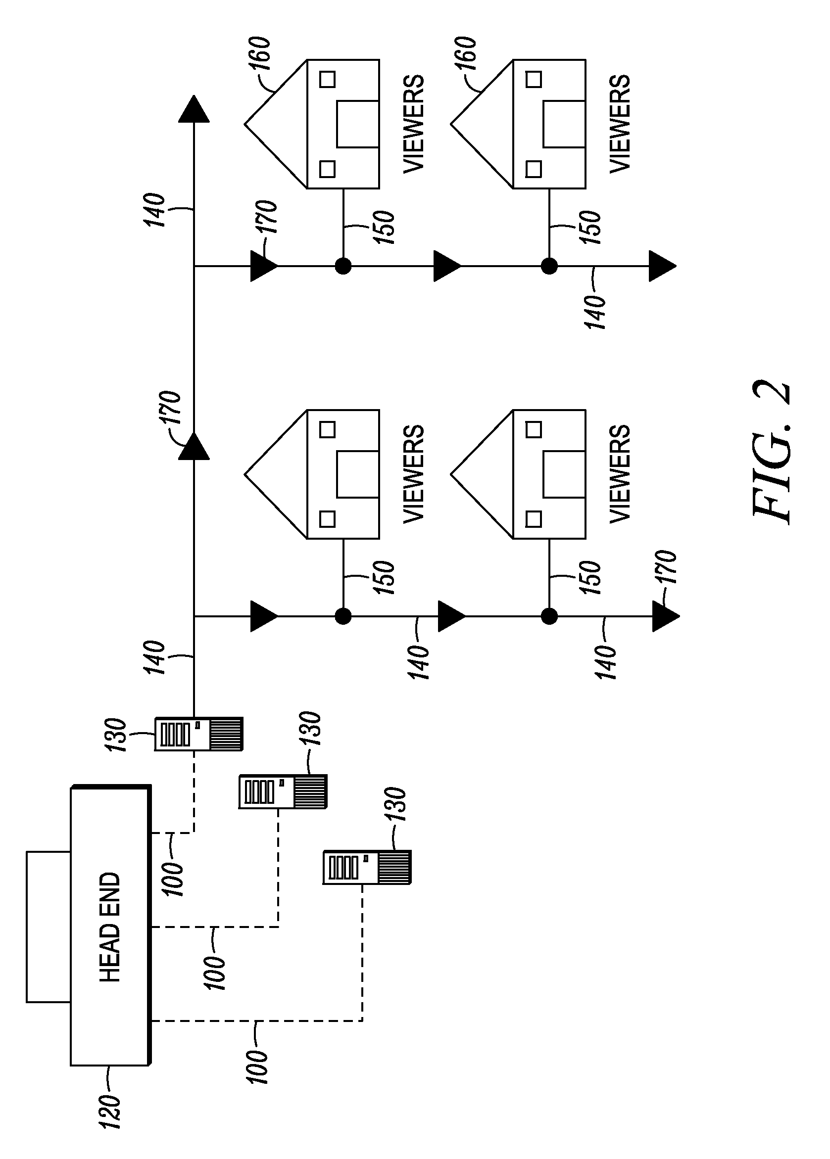 None The present disclosure relates to systems and methods that provide optical signals over a cable transmission network. Referring to As the reach of the systems increased, the signal distortion and operational cost associated with long chains of amplifiers became problematic, and segments of the coaxial cable were replaced with fiber optic cables to create a Hybrid Fiber Coax (HFC) network to deliver the RF broadcast content to the coaxial neighborhood transmission network. Optical nodes in the network acted as optical to electrical converters to provide the fiber-to-coax interfaces. As the cable network evolved, broadcast digital video signals were added to the multiplexed channels. The existing 6 MHz spacing for channels was retained, but with the evolving technology, each 6 MHz block could now contain multiple programs. Up to this point, each home received the same set of signals broadcast from the head end so that the amount of spectrum required was purely a function of the total channel count in the program line-up. The next major phase in CATV evolution was the addition of high speed data service, which is an IP packet-based service, but appears on the HFC network as another 6 MHz channel block (or given data service growth, more likely as multiple 6 MHz blocks). These blocks use FDM to share the spectrum along with video services. Unlike broadcast video, each IP stream is unique. Thus, the amount of spectrum required for data services is a function of the number of data users and the amount of content they are downloading. With the rise of the Internet video, this spectrum is growing at 50% compound annual growth rate and putting significant pressure on transmission quality parameters such as available bandwidth, signal distortion, etc. Such pressure has been further increased with the advent of narrowcast video services such as video-on-demand (VOD), which changes the broadcast video model as users can select an individual program to watch and use VCR-like controls to e.g. start, stop, and fast-forward. In this case, as with data service, each user requires an individual program stream. Cable receivers, including those integrated into set-top boxes and other such devices, typically receive this information from the head end via coaxial transmission cables. The RF signal that is delivered can simultaneously provide a wide variety of content, e.g. high speed data service and up to several hundred television channels, together with ancillary data such as programming guide information, ticker feeds, score guides, etc. Through the cable receiver's output connection to the home network, the content is delivered to television sets, computers, and other devices. The head end will typically deliver CATV content to many thousands of individual households, each equipped with a compatible receiver. Cable receivers are broadly available in many different hardware configurations. For example, an external cable receiver is often configured as a small box having one port connectable to a wall outlet delivering an RF signal, and one or more other ports connectable to appliances such as computers, televisions, and wireless routers or other network connections (e.g., 10/100/1,000 Mbps Ethernet). Other cable receivers are configured as circuit cards that may be inserted internally in a computer to similarly receive the signals from an RF wall outlet and deliver those signals to a computer, a television, or a network, etc. Still other cable receivers may be integrated into set-top boxes, which receive an input signal via an RF cable, decode the RF signal to separate it into distinct channels or frequency bands providing individual content, and provides such content to a television or other audio or audiovisual device in a manner that permits users to each select among available content using the set top box. As previously mentioned, the CATV transmission architecture has been modified to permit data to flow in both directions, i.e. data may flow not only from the head end to the viewer, but also from the viewer to the head end. To achieve this functionality, cable operators dedicate one spectrum of frequencies to deliver forward path signals from the head end to the viewer, and another (typically much smaller) spectrum of frequencies to deliver return path signals from the viewer to the head end. The components in the cable network have been modified so that they are capable of separating the forward path signals from the return path signals, and separately amplifying the signals from each respective direction in their associated frequency range. Hybrid fiber/coax networks generally have a bandwidth of approximately 500 MHz or more. Each television channel or other distinct content item transmitted along the forward path from the head end to a user may be assigned a separate frequency band, which as noted earlier has a typical spectral width of 6 MHz. Similarly, distinct content delivered along the return path from a user to the head end may similarly be assigned a separate frequency band, such as one having a spectral width of 6 MHz. In North America, the hybrid fiber/coax networks assign the frequency spectrum between 5 MHz and 42 MHz to propagate signals along the return path, and assign the frequency spectrum between 50 MHz and 750 MHz or more to propagate signals along the forward path. Referring to Using this architecture, forward path signals from the head-end are broadcast to all cable modem users on the same network or sub-network. Each cable modem filters out the portion of the signal it needs, which may then be selectively provided to the user. Along the return path, each cable modem delivers a signal to the head end through the CATV network, and which occupies a part of a spectrum shared among other cable modems. Therefore, the system may regulate which modem's return path signal is delivered to the network at which time using time or frequency division multiple access (TDMA or FDMA), 
