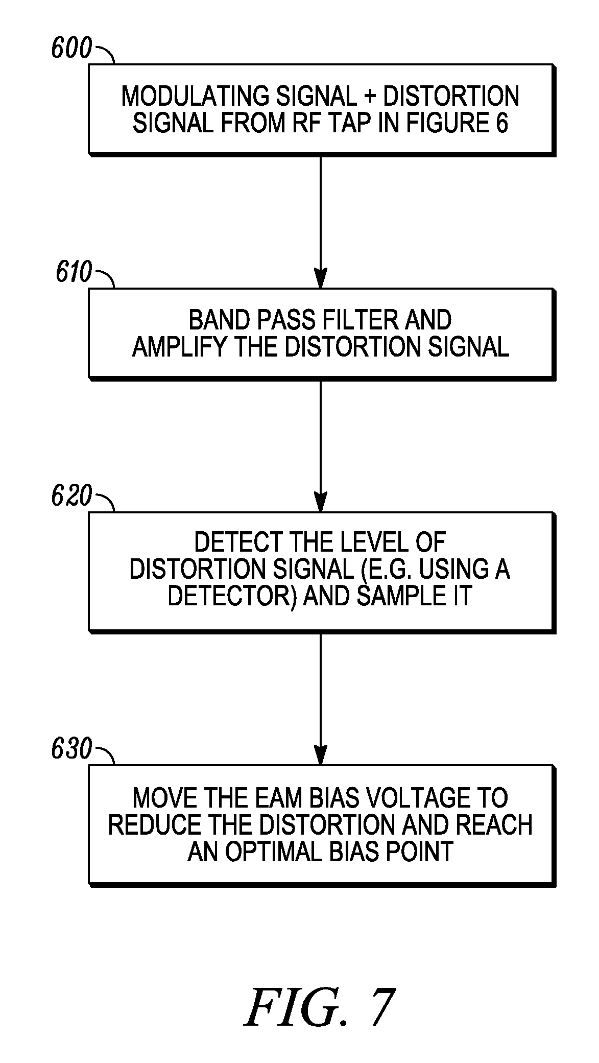 a modulator that has a first input for receiving an optical signal from an optical transmitter, a second input for receiving an electrical signal used by the modulator to modulate the optical signal, and an output for outputting a modulated optical signal, the modulator having a variable bias; and a controller that measures distortion from the electrical signal input to the second input of the modulator and uses the distortion measured from the electrical signal input to vary the bias of the modulator, wherein the distortion measured from the electrical signal input is measured independently from distortion in the outputted modulated optical signal. 2. The system of 3. The system of 4. The system of 5. The system of 6. The system of 7. The system of 8. A system comprising: