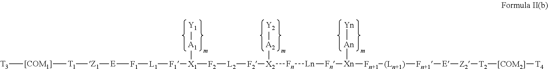 wherein X1-Xn, A1-An, Y1-Yn, F1-Fn, F1′-Fn′ and L1-Ln, and n are as described hereinabove for Formulas I, I(a), I(b), II and II(a);