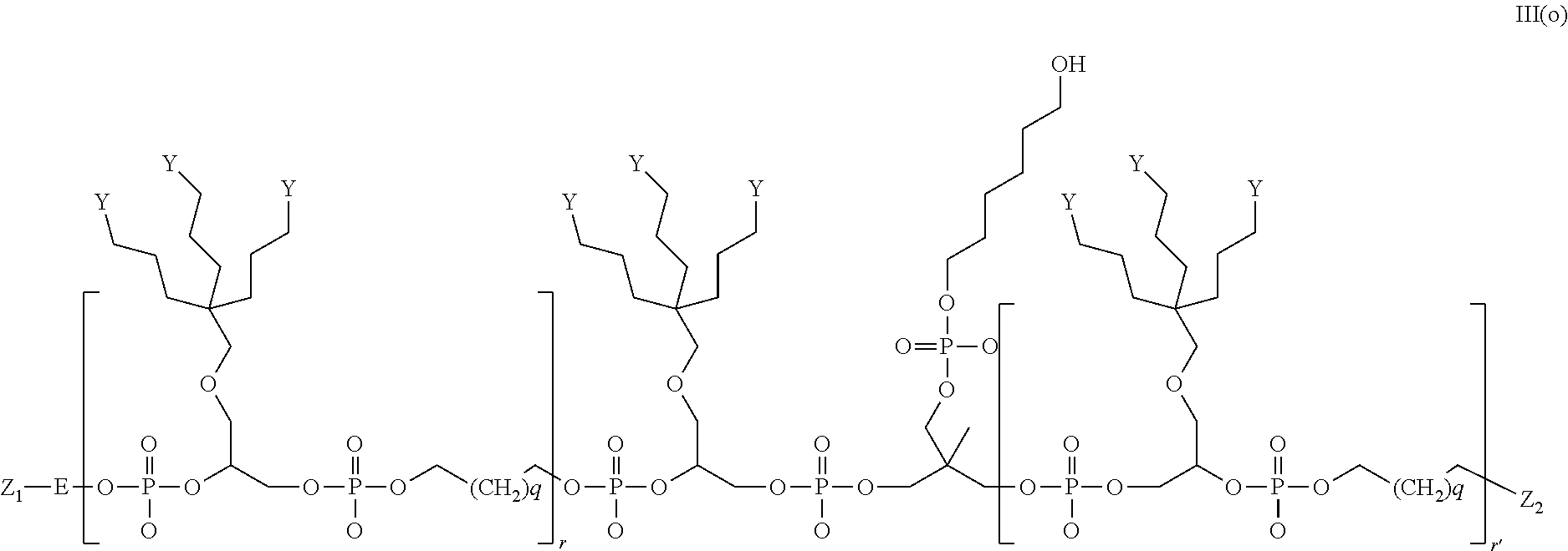 wherein Y is a delivery group or protected delivery group; and w, w′ and w″ are each independently an integer between 0 and 10. In another embodiment, w, w′ and w″ are each independently an integer between 0 and 3. In another embodiment, w, w′ and w″ are each independently 0 or 1. In another embodiment each of w, w′ and w″ is 1.