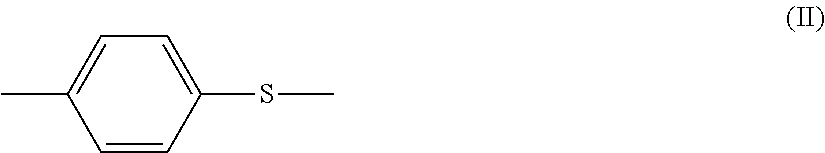 where Ar is an aromatic radical, or more than one condensed aromatic radical, and q is a number from 2 to 100, in particular from 5 to 20. The radical Ar in formula (VII) may be a phenylene or naphthylene radical. In one embodiment, the second segment may be derived from poly(m-thiophenylene), from poly(o-thiophenylene), or from poly(p-thiophenylene).