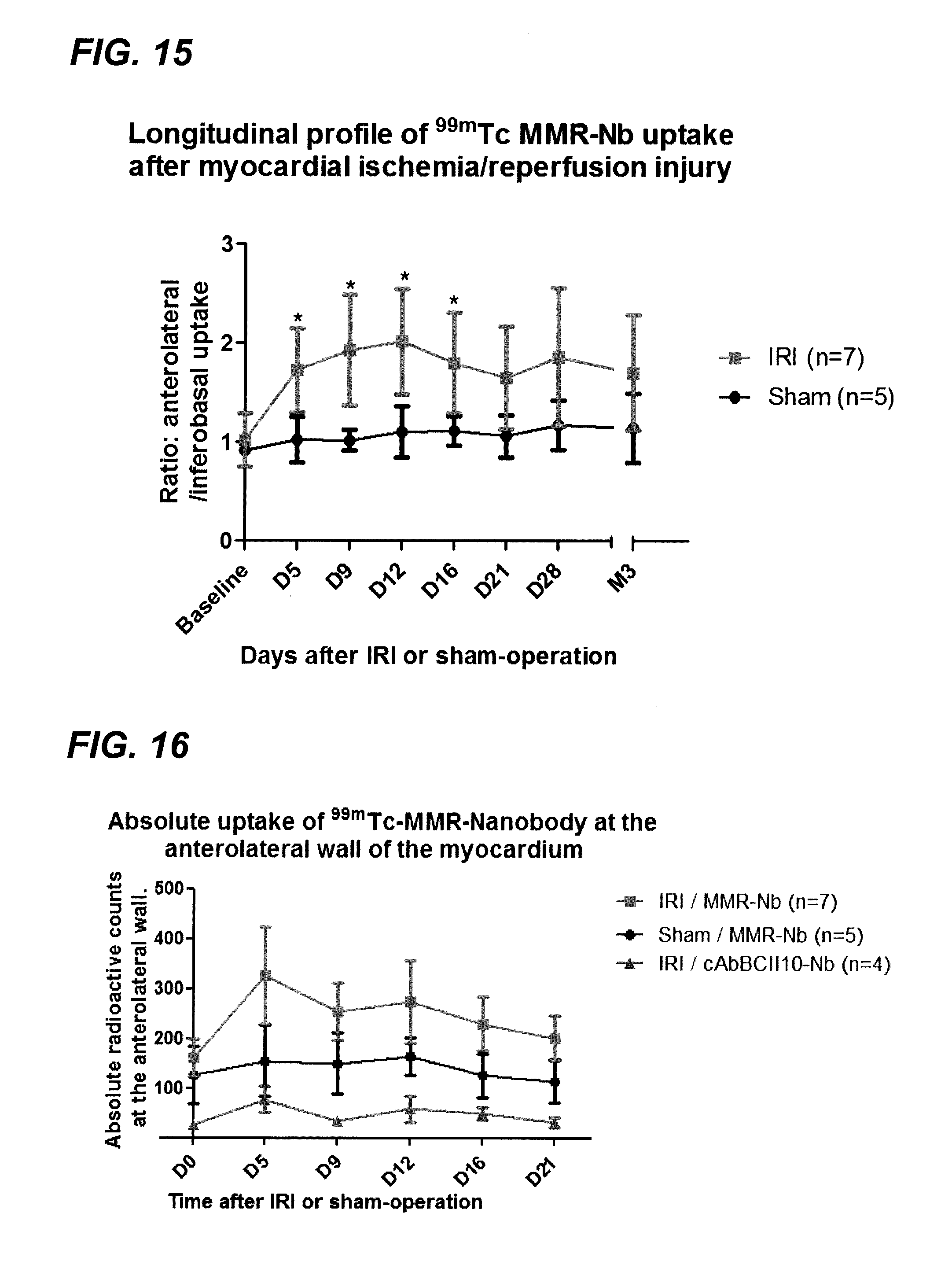 This application is a national phase entry under 35 U.S.C. §371 of International Patent Application PCT/EP2014/055336, filed Mar. 17, 2014, designating the United States of America and published in English as International Patent Publication WO 2014/140376 A1 on Sep. 18, 2014, which claims the benefit under Article 8 of the Patent Cooperation Treaty and under 35 U.S.C. §119(e) to U.S. Provisional Patent Application Ser. No. 61/798,071, filed Mar. 15, 2013. Pursuant to 37 C.F.R. §1.821(c) or (e), a file containing a PDF version of the Sequence Listing has been submitted concomitant with this application, the contents of which are hereby incorporated by reference. The disclosure relates to the field of medicine and cardiovascular diseases. In particular, immunoglobulin single variable domains directed against macrophage mannose receptor (MMR) are provided that can be used in the diagnosis, prognosis and/or monitoring of cardiovascular diseases or as therapeutics. Also, the anti-macrophage mannose receptor (MMR) immunoglobulin single variable domains of the disclosure are useful at different stages of cardiovascular diseases, including post-infarction cardiovascular events. Further, the anti-macrophage mannose receptor (MMR) immunoglobulin single variable domains of the disclosure are particularly useful for the in vivo targeting and/or imaging of vulnerable atherosclerotic plaques. Cardiovascular disease is the leading cause of mortality and coronary heart disease alone is responsible for more than half of these deaths. The occurrence of a coronary event is due, in the vast majority of cases, to the rupture of a vulnerable or unstable coronary plaque, resulting in a sudden block of blood flow in critical arteries in the brain, the lungs or the heart. Several of these patients die suddenly of a first myocardial infarction or cardiac arrest without any symptoms or diagnosis of coronary artery disease (Naghavi et al., 2003, Circulation 108:1664-1672). Today, no general diagnostic method is available for detection or characterization of vulnerable plaques. Coronography, the reference method for the diagnosis of coronary artery disease, allows visualization of abnormal reductions of the internal diameter of an artery, called “stenoses,” but does not allow the identification of non-stenotic plaques. Nuclear imaging holds potential for molecular imaging of vulnerable atherosclerotic plaques. Many tracers of various chemical nature, including lipoproteins, peptides, oligopeptides, antibodies, sugars, antisense nucleotides and nanoparticles were evaluated experimentally for molecular imaging of atherosclerosis (Riou et al., 2009, Curr. Med. Chem. 16:1499-1511). The main evaluated targets were oxidized LDLs and their receptors, the inflammatory process via macrophage cell imaging, or imaging of receptors or enzymes expressed by this cell type, apoptotic phenomena and the phenomenon of neoangiogenesis. Among tracers targeting the inflammatory process, 99m Tc-MCP-1 for nuclear imaging via SPECT (Single Photon Emission Computed Tomography) and [18F]-FDG for PET (Positron Emission Tomography) imaging have been used for in vivo noninvasive imaging of macrophage accumulation in experimental atherosclerotic lesions. On a clinical level, [18F]-FDG and 99mTc-Annexin A5 allowed noninvasive imaging of the accumulation of macrophages and apoptotic cells, respectively, in carotid atherosclerotic plaques of symptomatic patients. However, none of these radiotracers is currently used in routine clinical practice, mainly because of their inability to reach sufficient ratios of lesion versus background noise level in the coronary lesions. Indeed, nuclear imaging of vulnerable plaques in the coronary arteries is particularly difficult because of the low volume of the lesions and their proximity to blood that contains circulating unbound tracer. An ideal tracer should combine high affinity and specificity, good solubility and stability and efficient radiolabeling with small size and fast blood clearance, so that high contrast images can be obtained shortly after administration. Nanobodies constitute a promising new class of radiotracers that might adhere to these conditions. They are derived from unique heavy-chain-only antibodies that are by nature present in camelids and represent the smallest possible (10-15 kDa) functional immunoglobulin-like antigen-binding fragment. Nanobody-based tracers targeting cancer antigens epidermal growth factor receptor, carcinoembryonic antigen, or human epidermal growth factor receptor 2 (HER2) with (sub)nanomolar affinities have already proven their ability to generate highly specific contrast images for non-invasive bio-imaging of cancer cells in mouse tumor models (Huang et al., 2008, Mol. Imaging Biol. 10:167-175; Vaneycken et al., 2010, J. Nucl. Med. 51:1099-1106; Vaneycken et al., 2011, FASEB J. 25:2433-2446). Recently, in hypercholesterolemic ApoE-deficient mice, representing a mouse model of atherosclerosis, it was documented that high contrast images and high lesion-to-heart and lesion-to-blood ratios could be obtained via SPECT imaging using Nanobodies targeting vascular cell adhesion molecule-1 (VCAM-1). (Broisat et al., 2012, Circ. Res. 110:927). An ideal radiotracer for molecular imaging is characterized by a high affinity and specificity for its target, efficient radiolabeling, and a small size as well as a rapid blood clearance, so that images with high contrast can be rapidly obtained after administration of the tracer. The latter is particularly crucial in the case of the plaque because of its small size and its intravascular location. The disclosure is based on the inventors' surprising findings that a set of immunoglobulin single variable domains, in particular Nanobodies, recognizing the macrophage mannose receptor (MMR or CD206) exhibited all the characteristics of an ideal molecular imaging tracer defined above and that they can be used for targeting and i