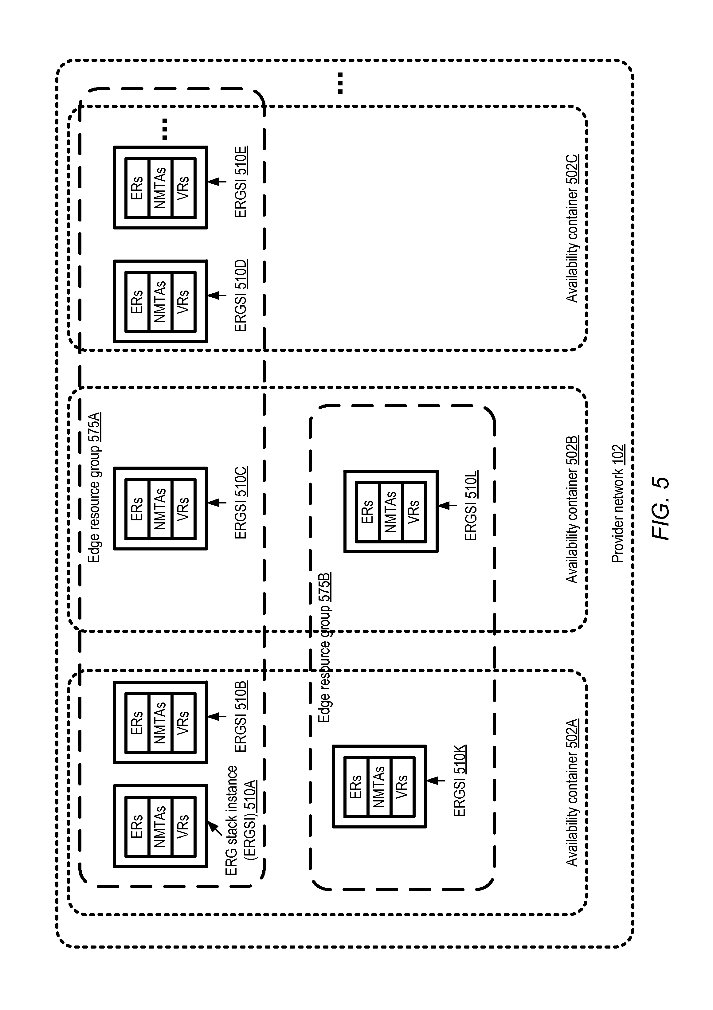 select, from among a plurality of edge resource groups (ERGs) of the provider network, wherein each ERG of the plurality of ERGs includes at least one edge router and at least one network marker translation agent (NMTA), a first ERG to be used for routing network packets between a first resource collection of a virtual computing service (VCS) of the provider network and a client network of a particular client; determine, based at least in part on detecting a triggering condition, that a second ERG of the plurality of ERGs is to be used for routing at least a subset of network packets between the first resource collection and the client network; and initiate a set of configuration changes to enable connectivity between the first resource collection and the client network via the second ERG. 17. The non-transitory computer-accessible storage medium as recited in establish, for network isolation of traffic between the client network and the provider network, one of: (a) a VPN (virtual private network) connection on behalf of the particular client or (b) a dedicated direct physical link. 18. The non-transitory computer-accessible storage medium as recited in prior to determining that the second ERG is to be used for routing at least the subset of network packets between the first resource collection and the client network, designating the first ERG as a primary ERG associated with a virtual private gateway (VPG) configured for the first resource collection, wherein the first set of configuration changes comprises designating the second ERG as a secondary ERG associated with the VPG. 19. The non-transitory computer-accessible storage medium as recited in subsequent to designating the second ERG as the secondary ERG, (a) designating the second ERG as a primary ERG associated with the VPG and (b) designating the first ERG as a secondary ERG associated with the VPG. 20. The non-transitory computer-accessible storage medium as recited in
