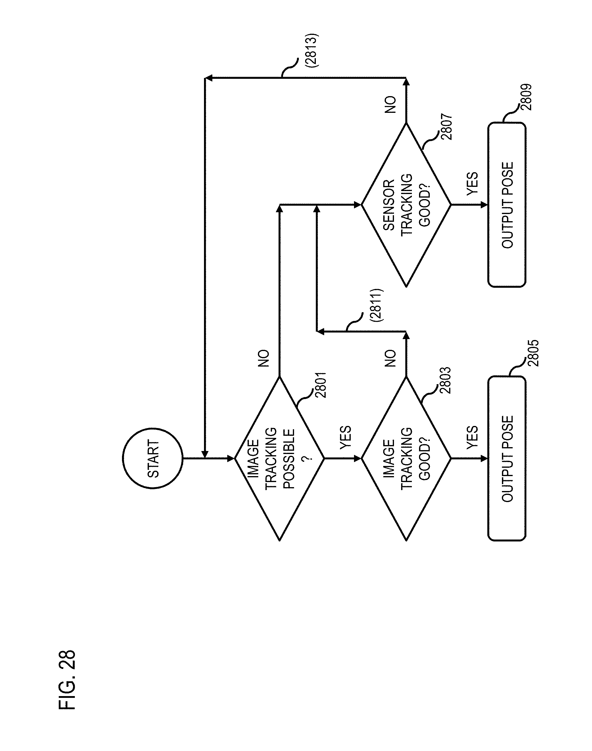 FIG. 28 is a flowchart of a hybrid camera pose estimation utilized in the process of FIGS. 3-8, according to one embodiment. In one embodiment, the image based pose tracking is invoked as much as possible, while sensor based tracking is used only if the image based tracking is unavailable or unreliable. In step 2801, the identification platform 109 may determine the possibility of image based pose tracking in the at least one UE 101. In one scenario, upon determining image tracking is possible, the identification platform 109 may further determine the accuracy provided by image-based pose estimators (step 2803) and may provide the image tracking as an output pose based, at least in part, on a determination that the image tracking is accurate (step 2805). On the other hand, if the identification platform 109 is of determination that the image based pose estimator is inaccurate or unreliable then the identification platform 109 may opt for sensor based tracking (step 2811). In one scenario, the identification platform 109 may be of determination that image based tracking is unavailable for the one or more UE 101, whereby the identification platform 109 may invoke sensor based pose tracking (step 2807) and may provide the sensor based pose tracking as an output pose based, at least in part, on a determination that the sensor tracking is accurate (step 2809). On the other hand, if the identification platform 109 is of determination that the sensor based pose tracking is erroneous or imprecise, the identification platform 109 may select image based tracking for generating the output pose (step 2813).