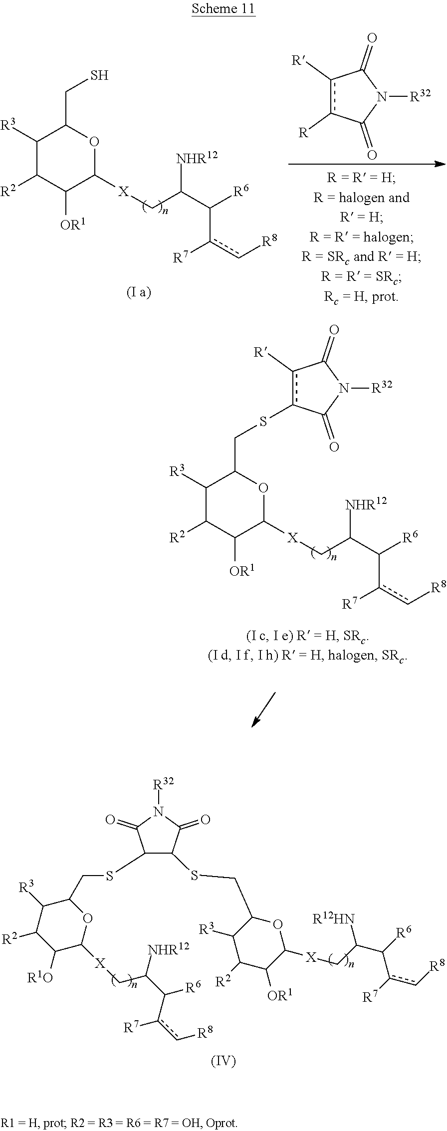 is an optional double bond are formed directly from thio-maleimide compounds I d, I f and I h where R′ is halogen or H and