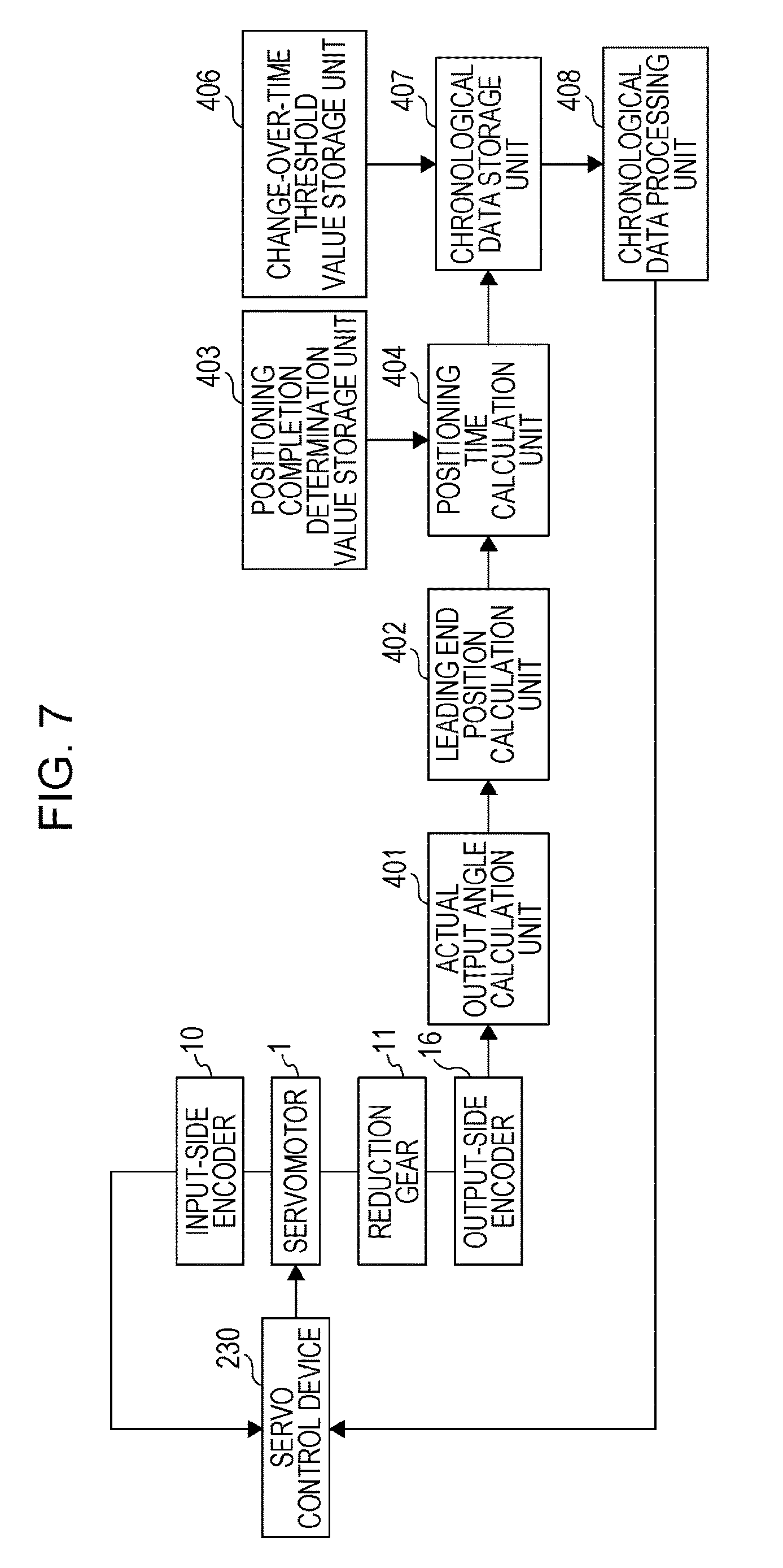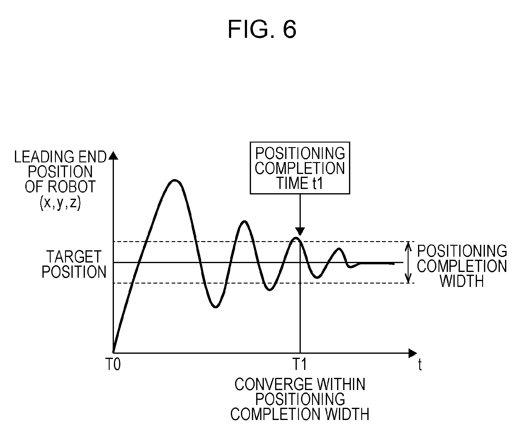 Feedback control is carried out on respective servomotors so that detection angles detected by respective input-side encoders become target angles to be obtained when a leading end of a robot has moved to a positioning completion position of a first motion. Subsequently, the position of the leading end of the robot is obtained on the basis of the detection angles detected by the respective output-side encoders. The time from a time point at which the detection angles detected by the input-side encoders are brought to the target angles through the feedback control to a time point at which a vibration width of the calculated position of the leading end of the robot relative to the positioning completion position converges within a convergence range is obtained. The obtained time is set in the stopping duration of the robot.