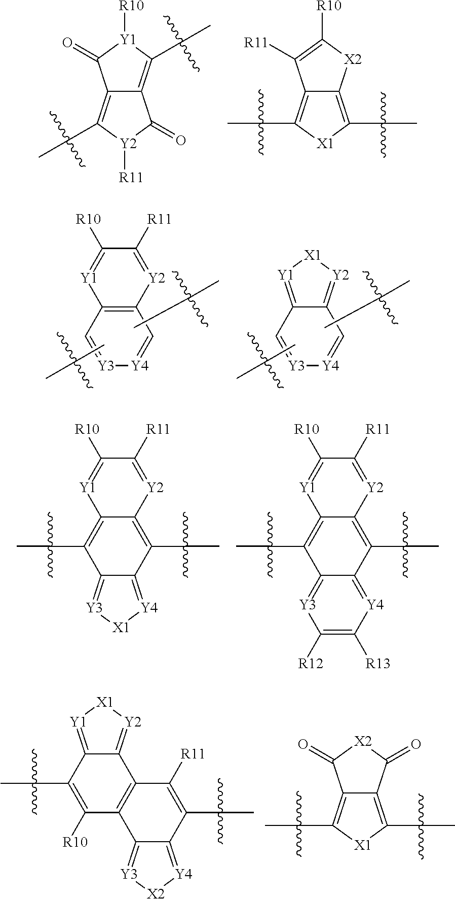 Preparation Copolymer 1/PC71BM = 0.64 7.46 64.0 3.02 Example 1 1:2 Preparation Copolymer 2/PC71BM = 0.63 7.27 68.5 3.08 Example 2 1:2 Preparation Copolymer 3/PC71BM = 0.63 8.44 69.4 3.69 Example 3 1:2 Preparation Copolymer 4/PC71BM = 0.64 8.41 68.1 3.64 Example 4 1:2 Preparation Copolymer 5/PC71BM = 0.61 7.43 68.7 3.07 Example 5 1:2 Preparation Copolymer 6/PC71BM = 0.62 7.36 67.8 3.08 Example 6 1:2 Comparative Copolymer 7/PC71BM = 0.34 3.49 32.6 0.39 Example 1 1:2 Comparative Copolymer 8/PC71BM = 0.33 3.97 34.3 0.45 Example 2 1:2 TEST EXAMPLE 2