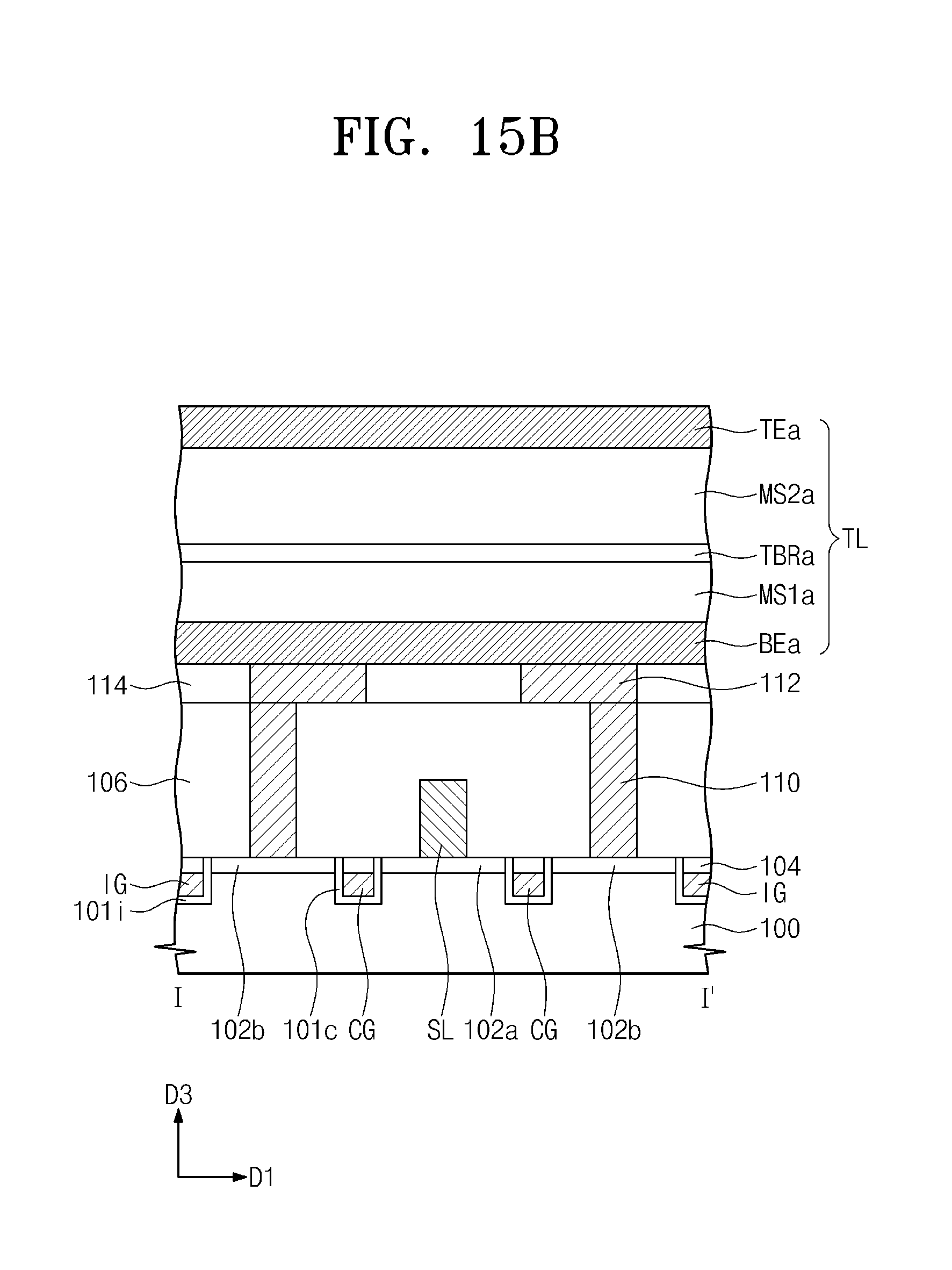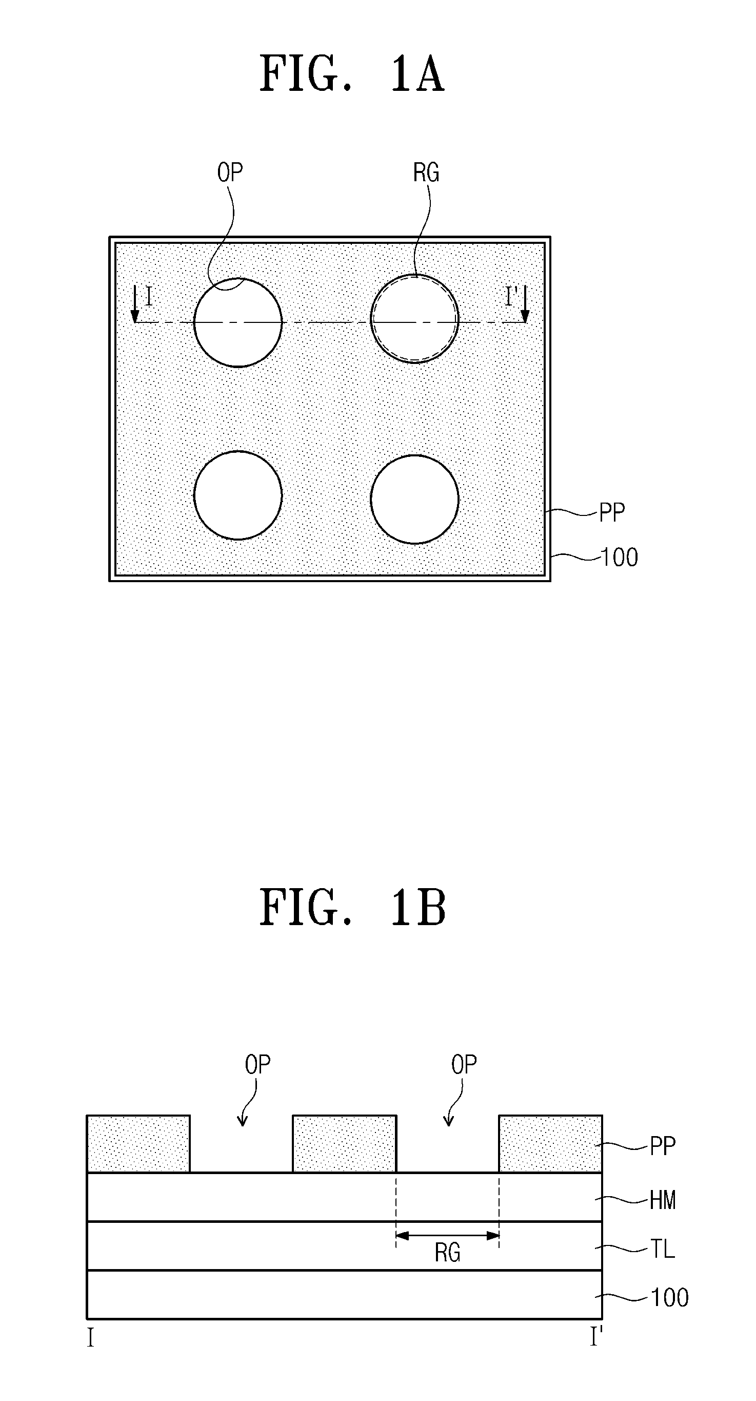 forming an etch target layer on a substrate, the etch target layer comprising a free magnetic layer, a pinned magnetic layer, and a tunnel barrier layer disposed between the free and pinned magnetic layers; forming a hard mask pattern on the etch target layer by: